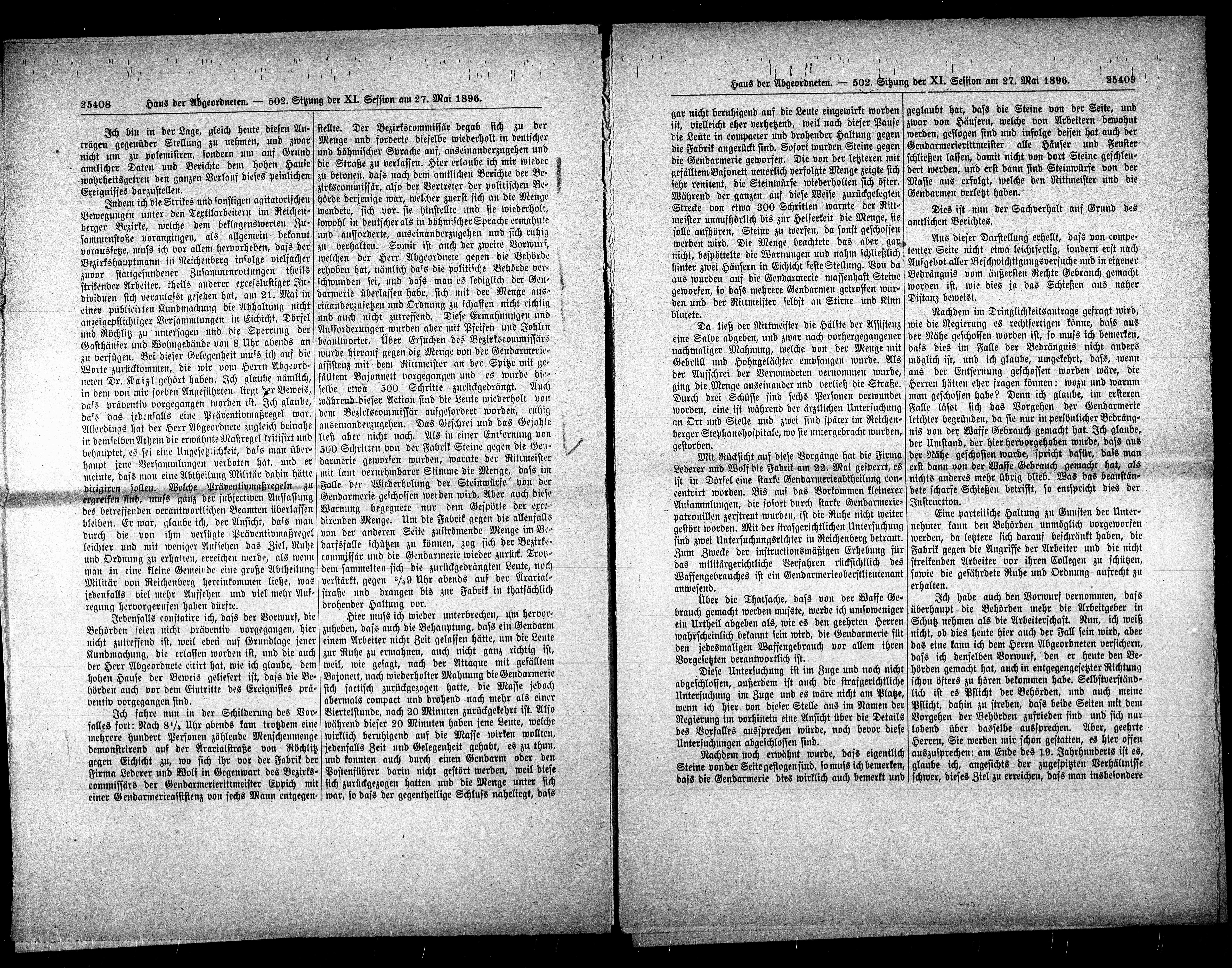 Haus der Abgeordneten. — 502. Sitzung der XI. Session am 27. Mai 1896.