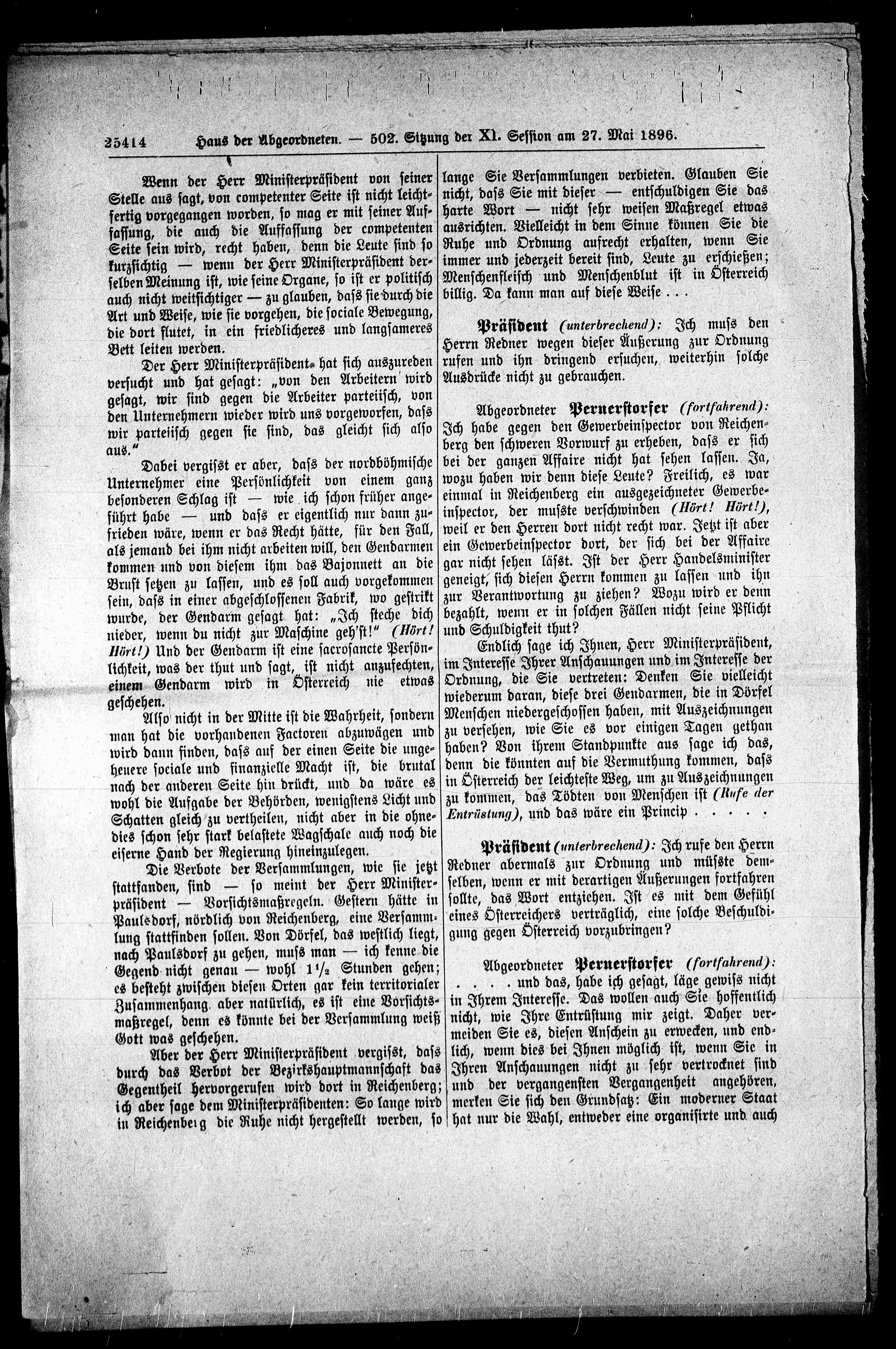 Haus der Abgeordneten. — 502. Sitzung der XI. Session am 27. Mai 1896.