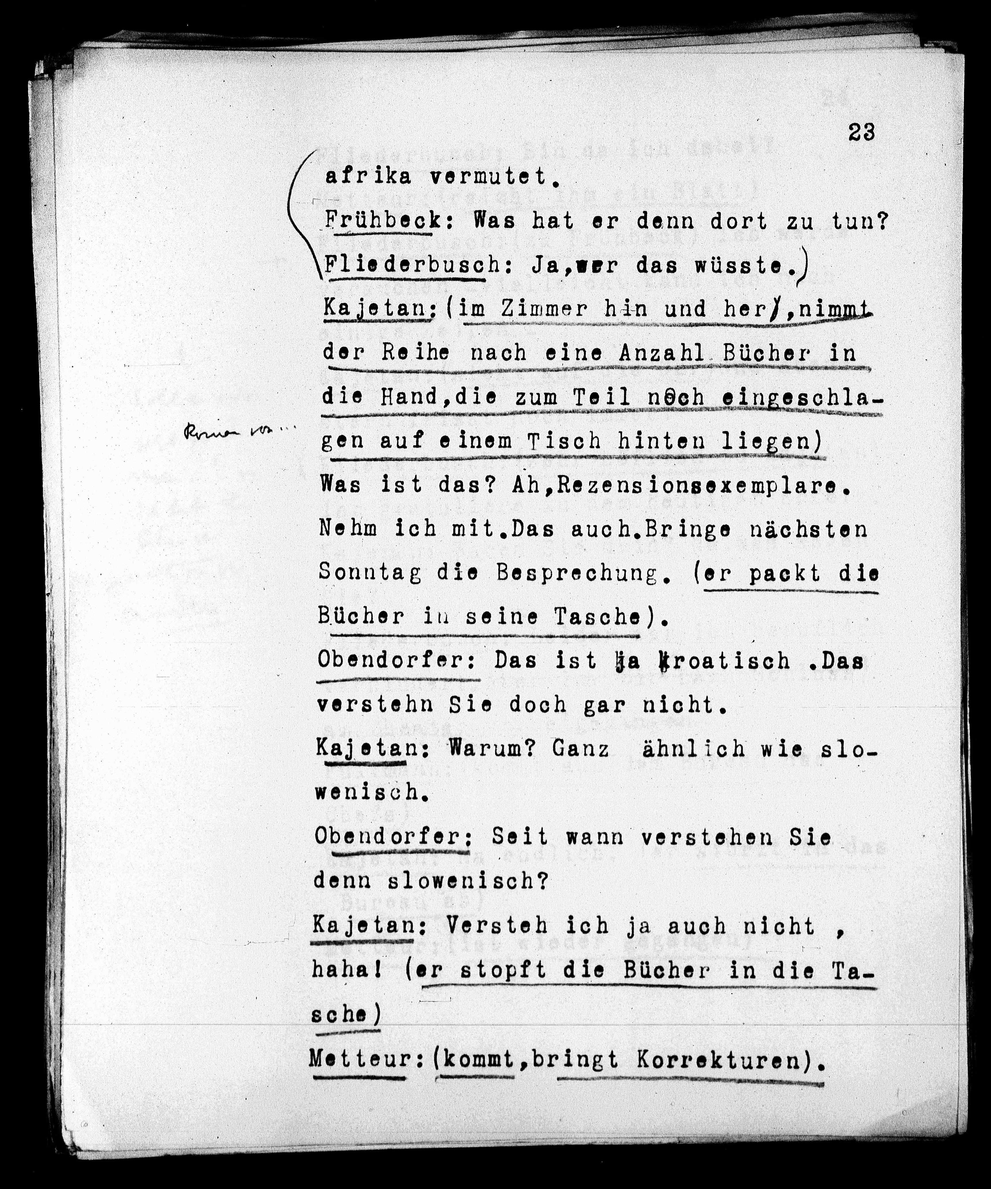 Metteur: (kommt,bringt Korrekturen).