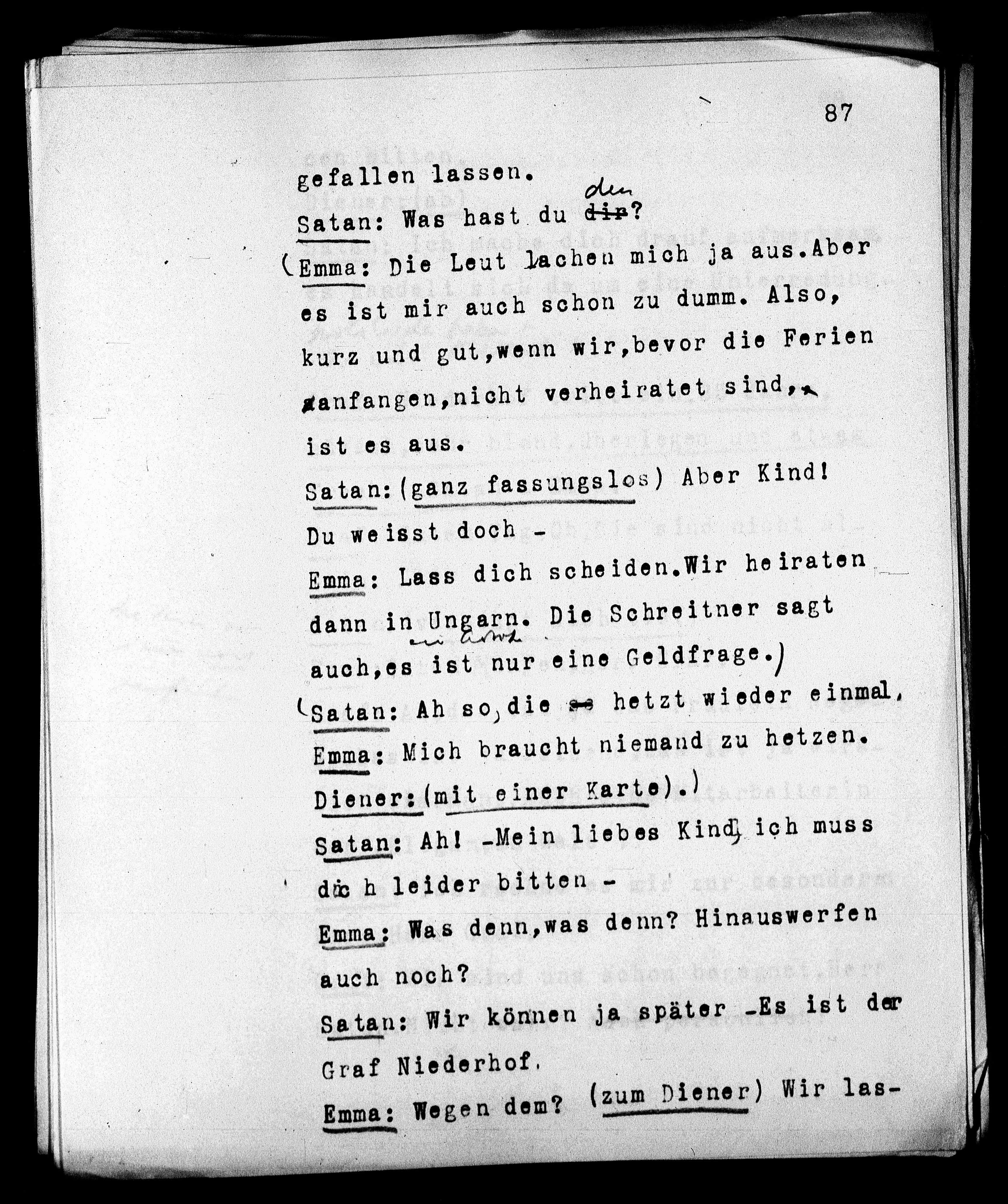 Emma: Wegen dem? (zum Diener) Wir las-