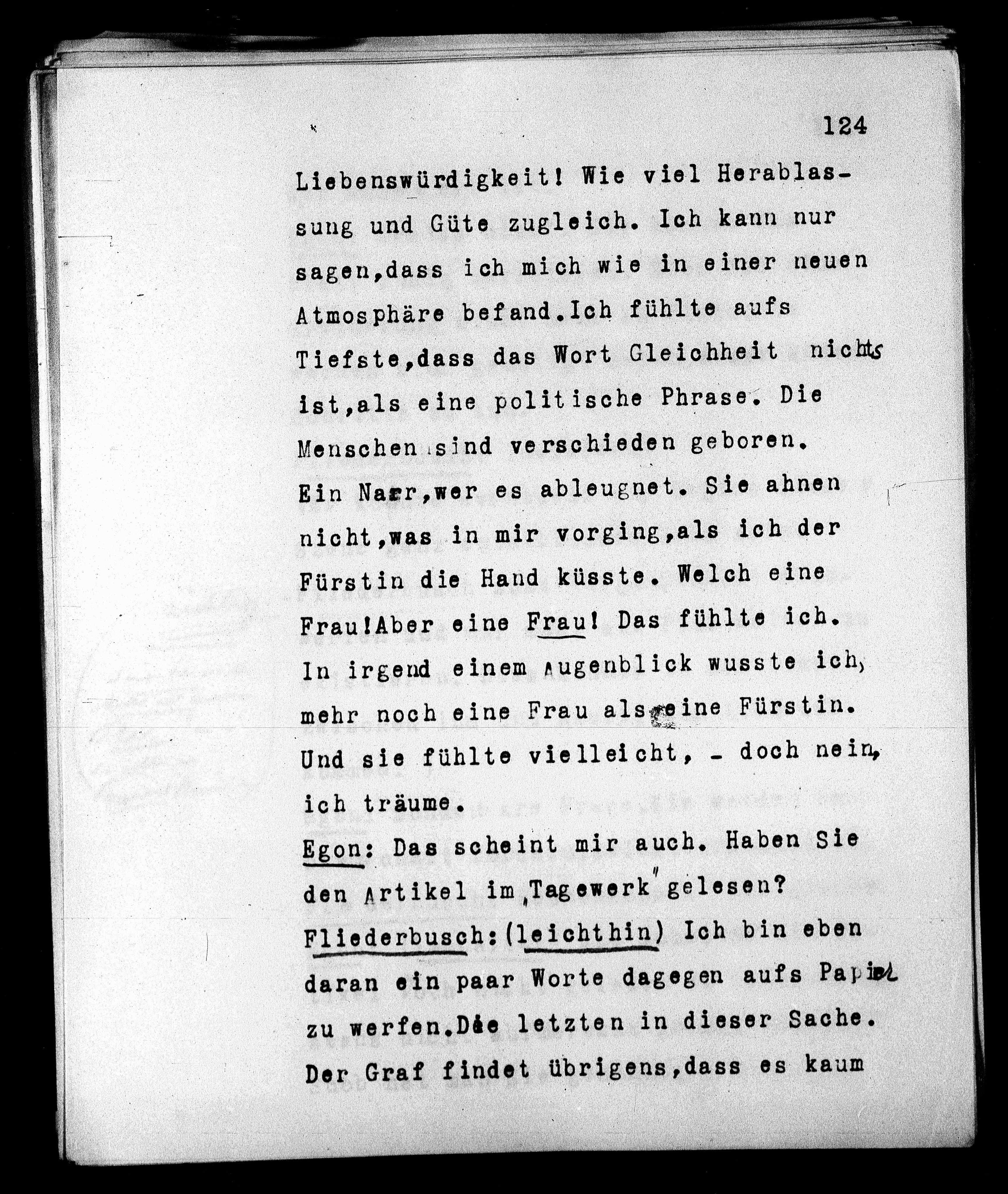 Fürstin die Hand küsste. Welch eine