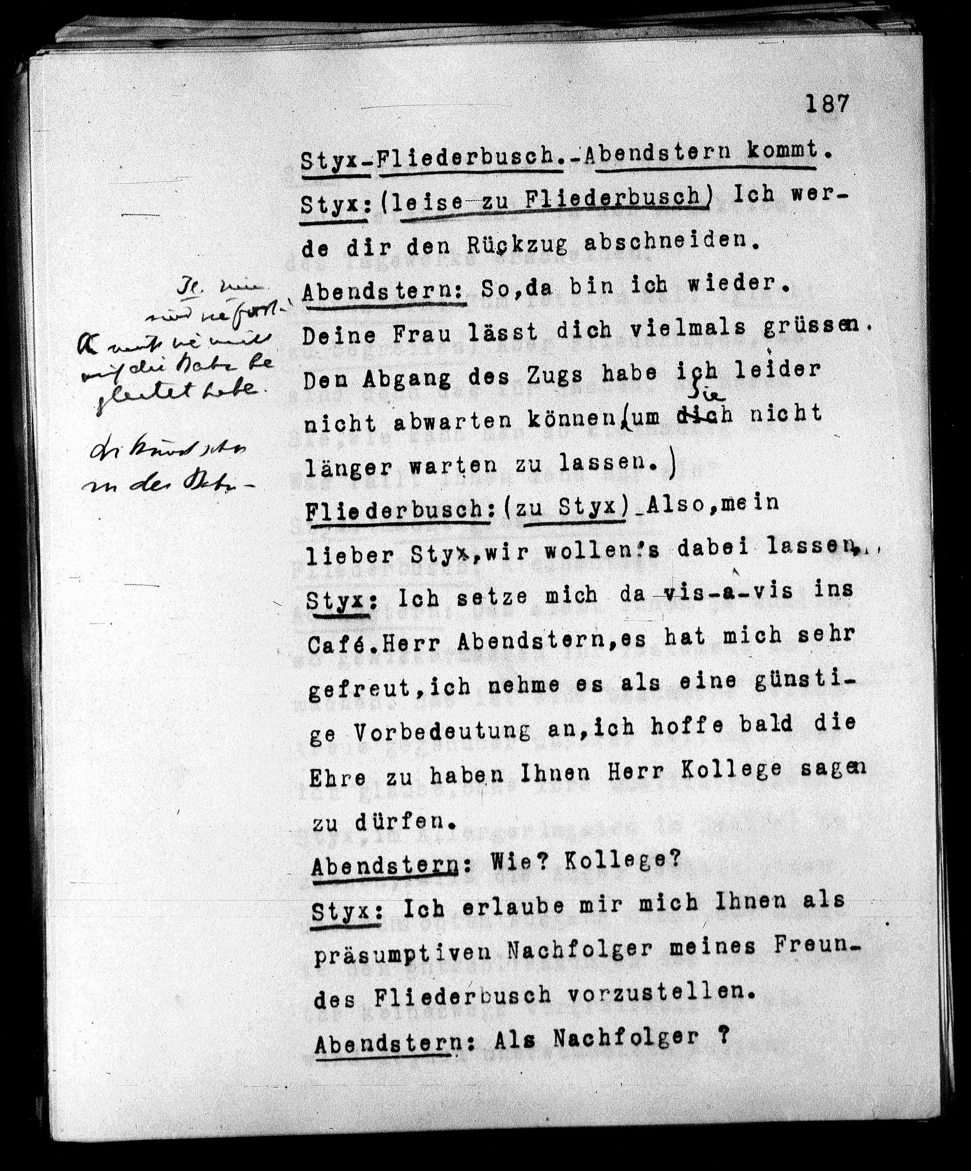 styx: (leise zu Fliederbusch) Ich wer¬