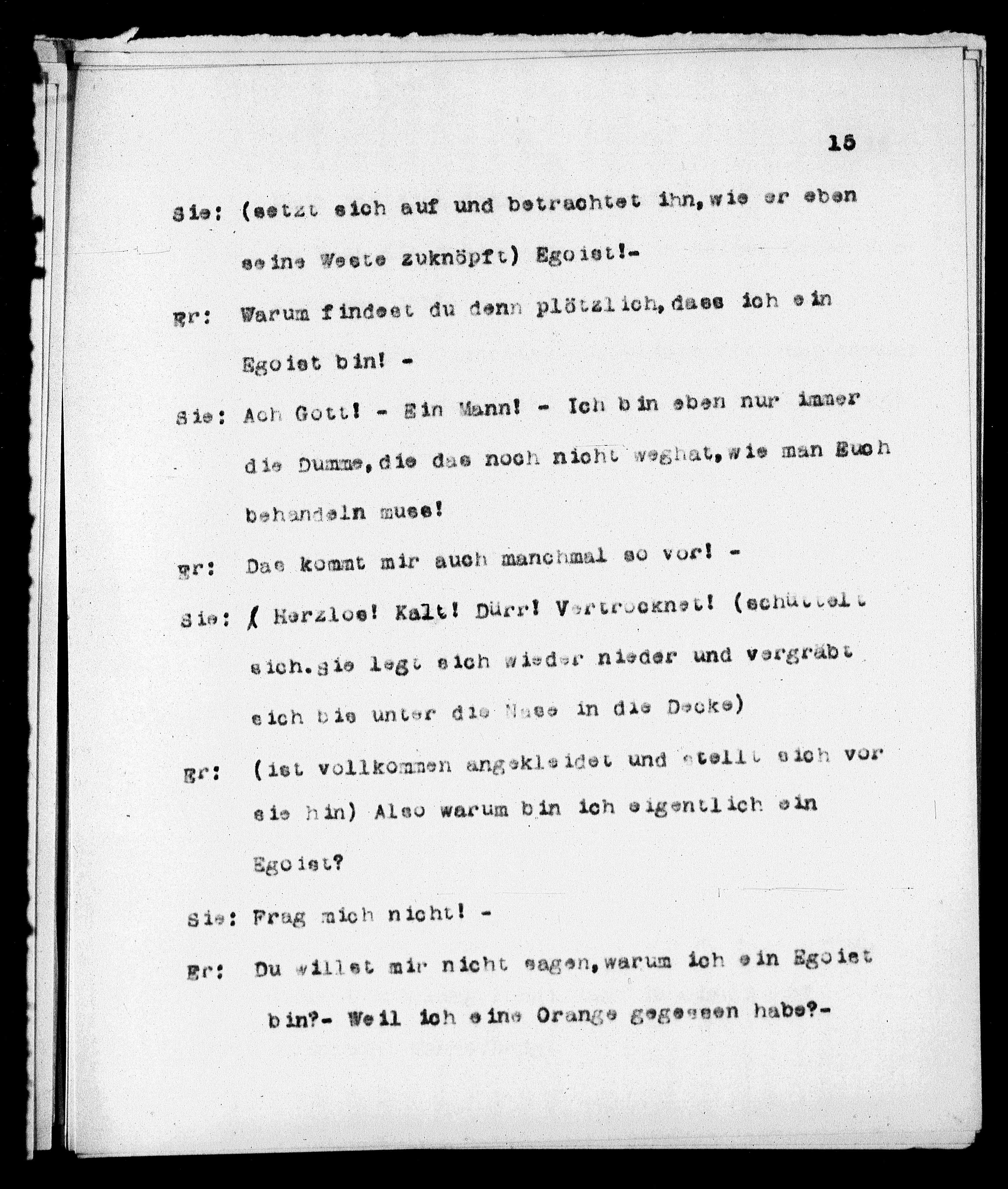 Er: Du willet mir nicht sagen, warum ich ein Egoiet