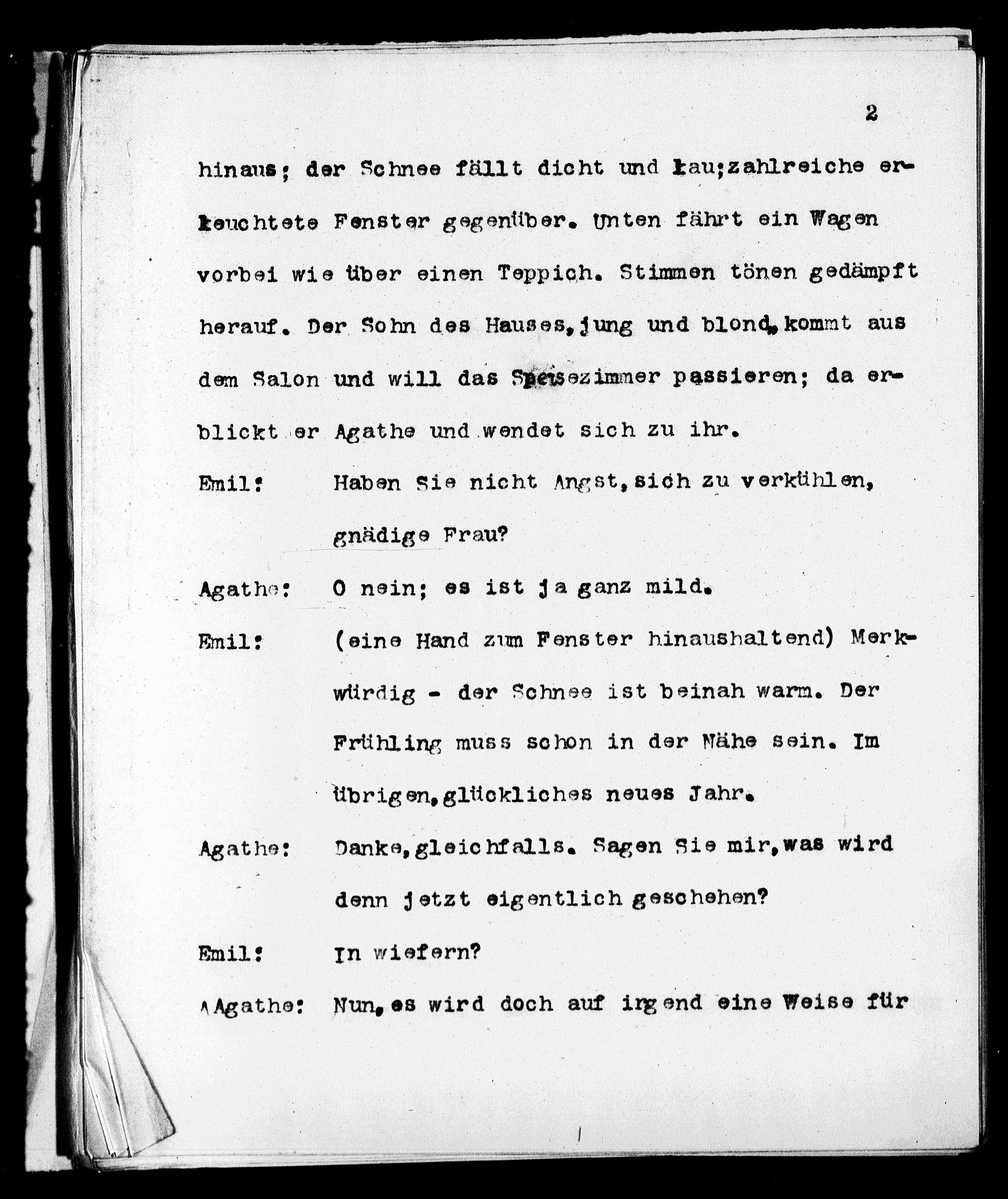 blickt er Agathe und wendet sich zu ihr.
