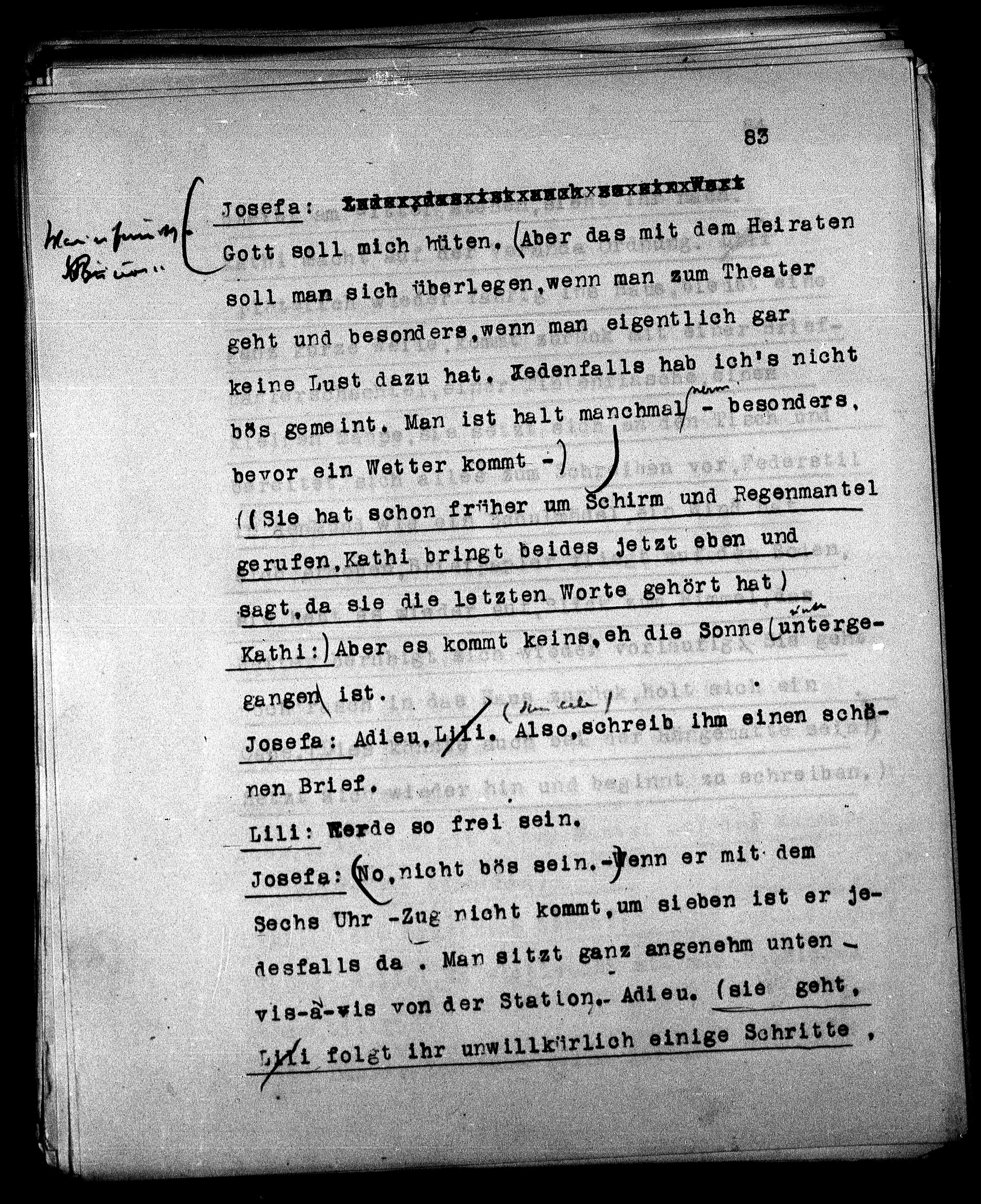 Josefa: Adieu, Lili. Also, schreib ihm einen schö-