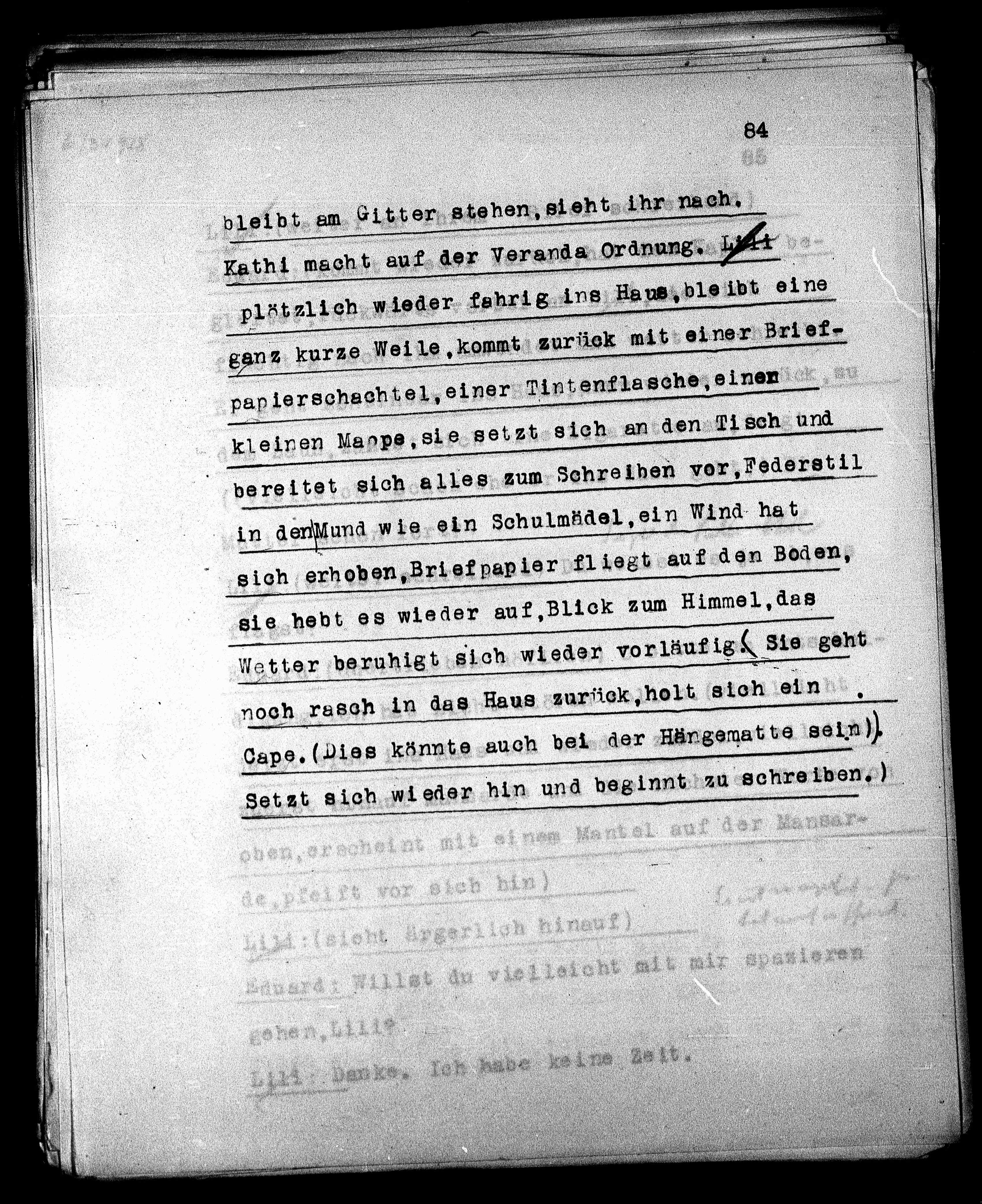 sich erhoben, Briefpapier fliegt auf den Boden,