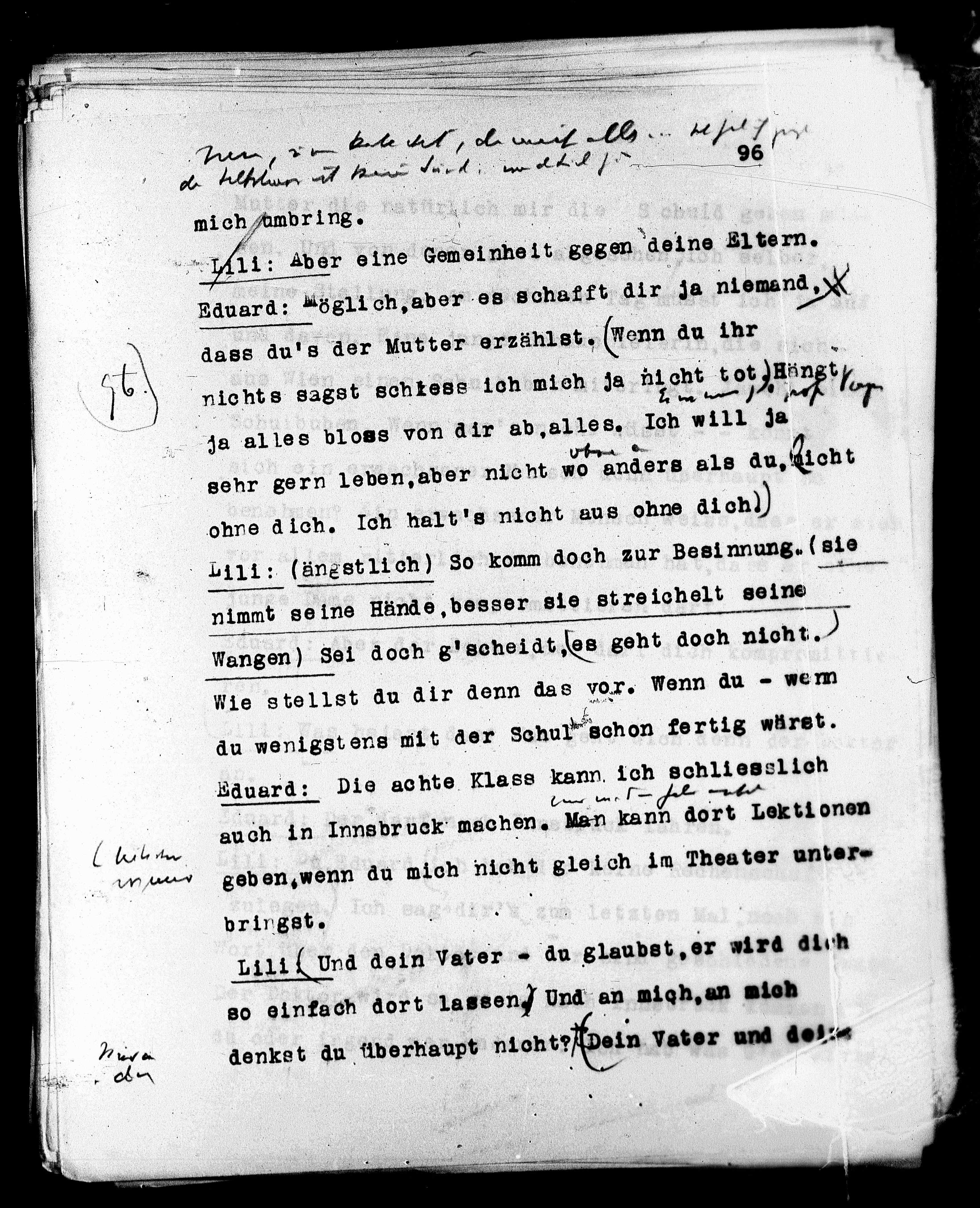 Lili: (ängstlich) So komm doch zur Besinnung, (sie