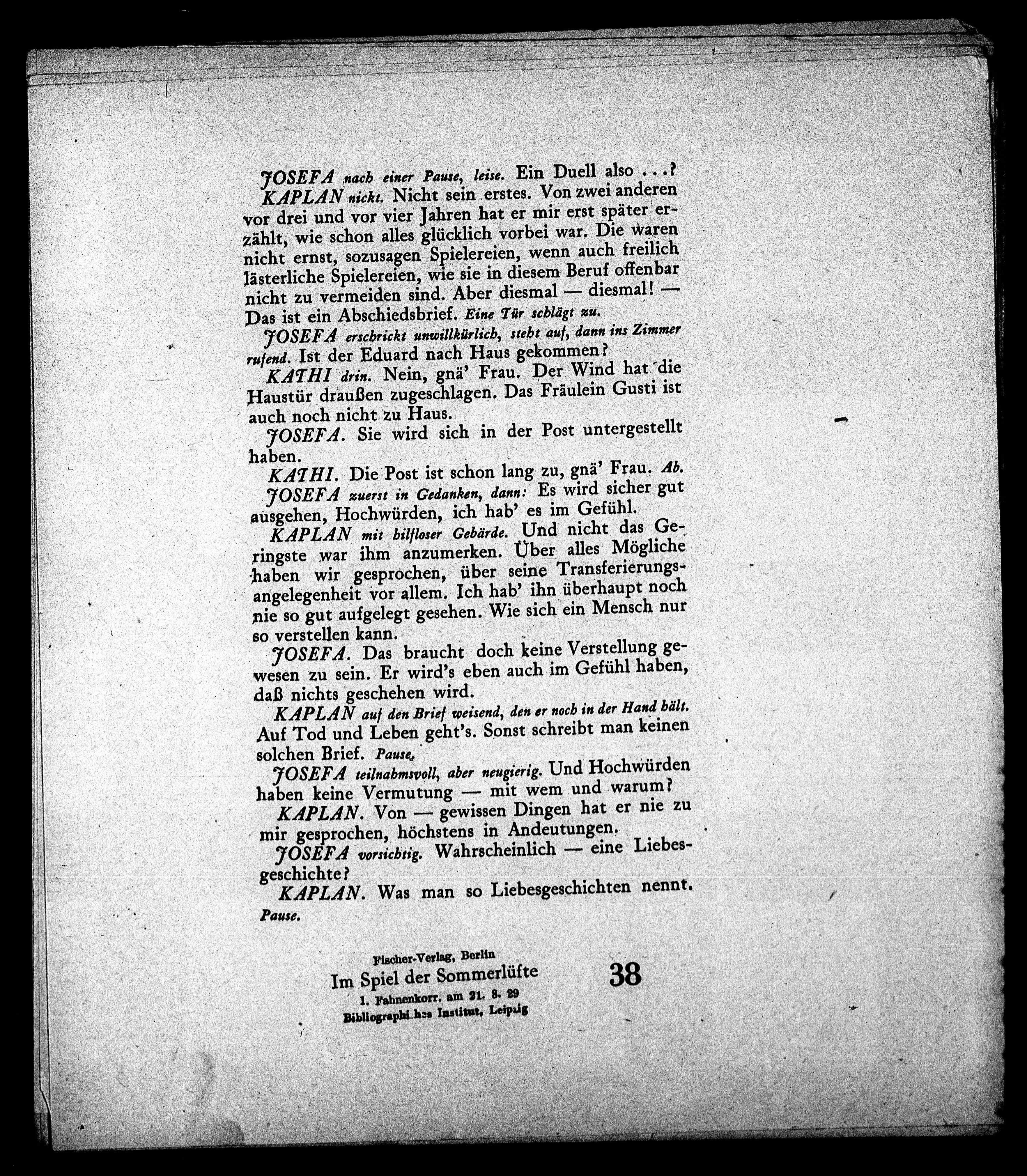 KAPLAN. Von — gewissen Dingen hat er nie zu