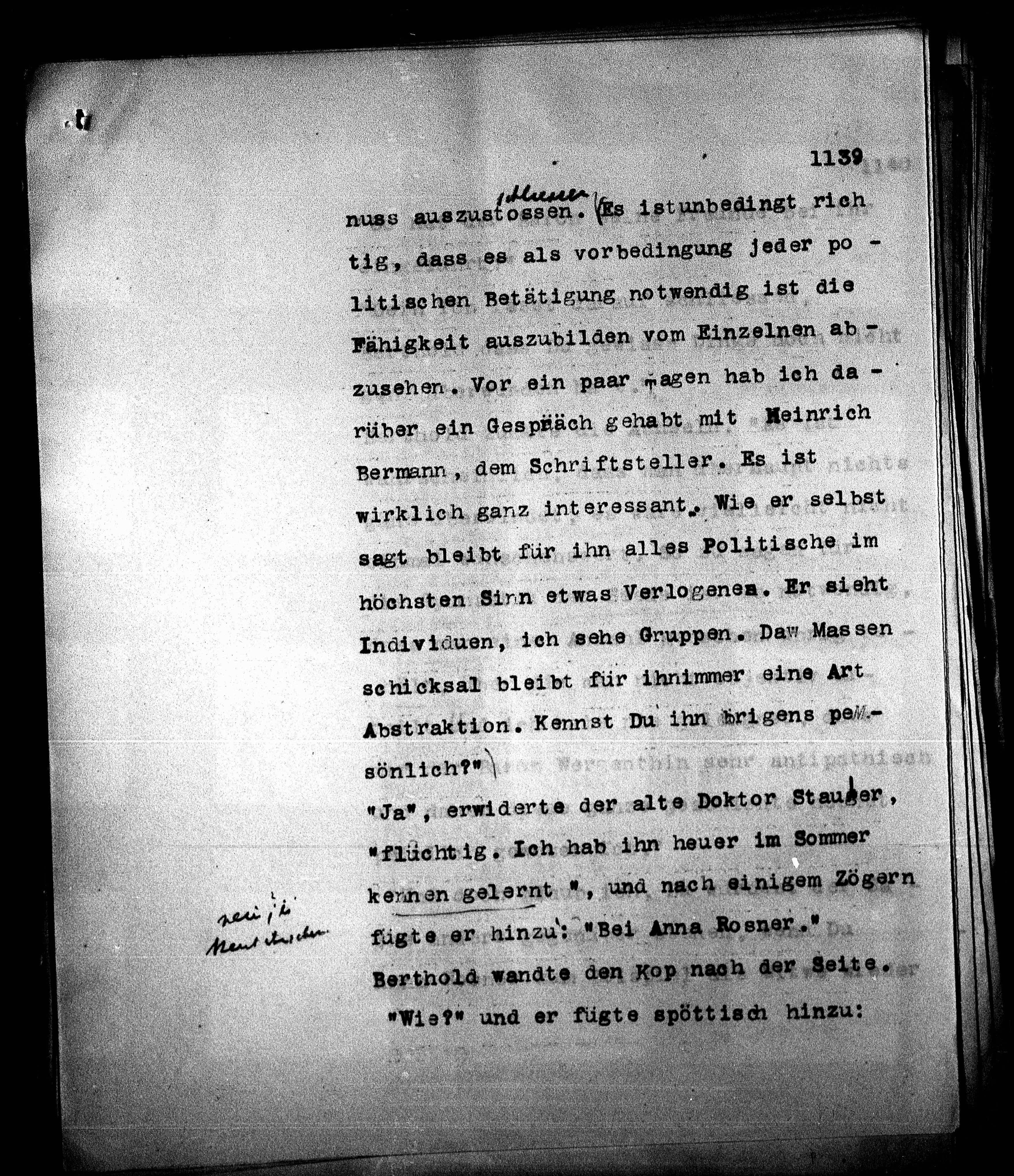 kennen gelernt", und nach einigem Zögern