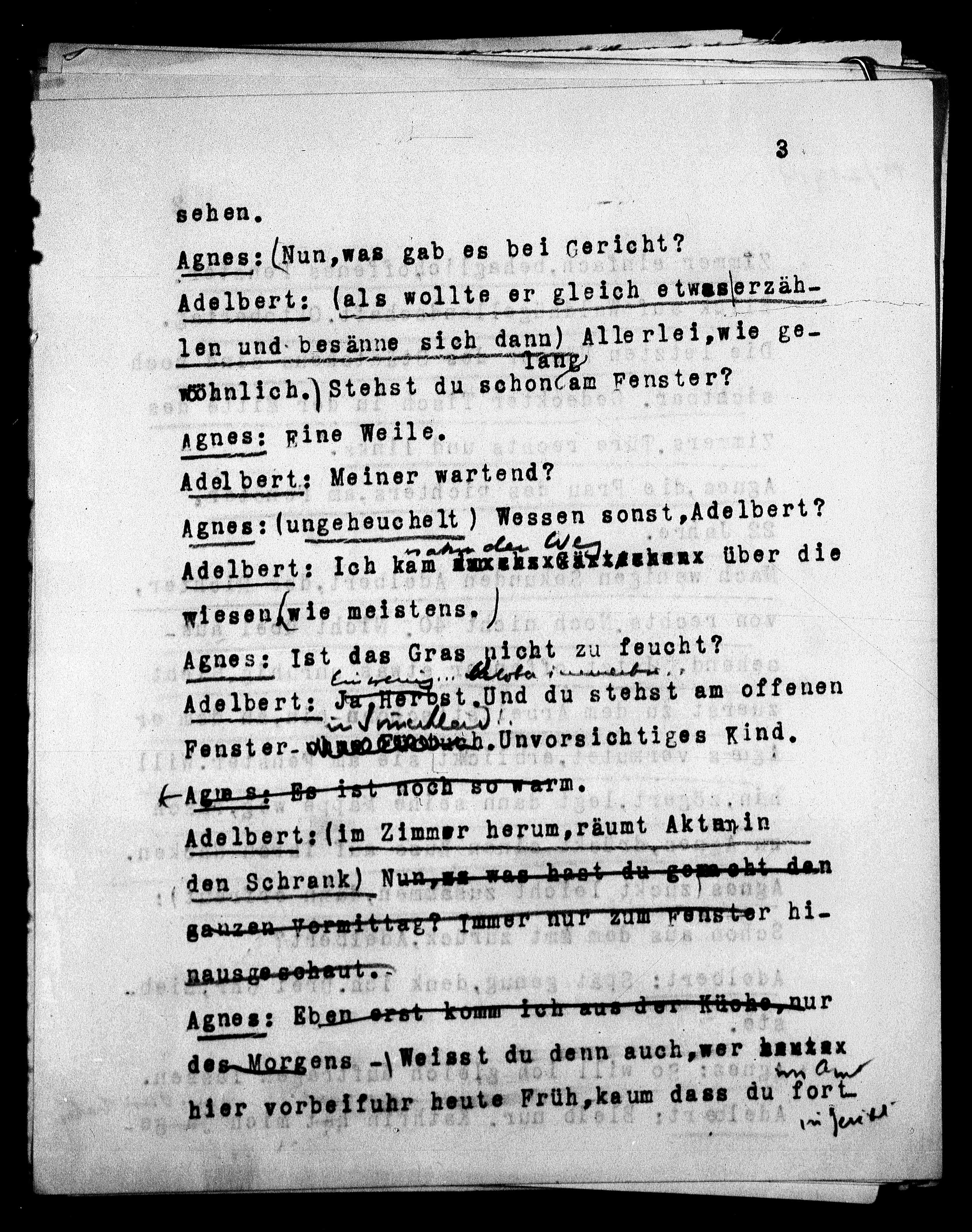 Agnes: (ungeheuchelt ) Wessen sonst,Adelbert?