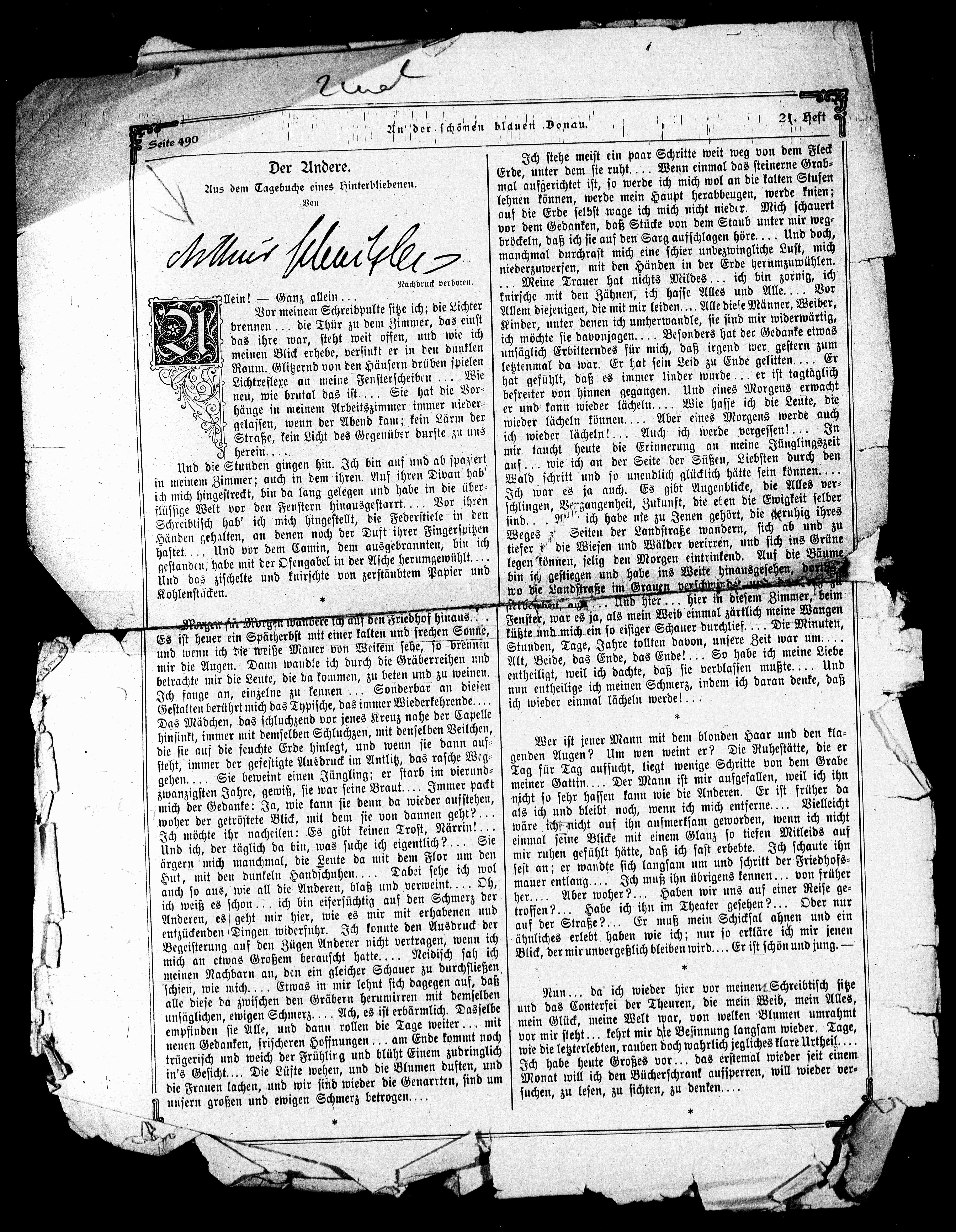 Aus dem Tagebuche eines Hinterbliebenen.