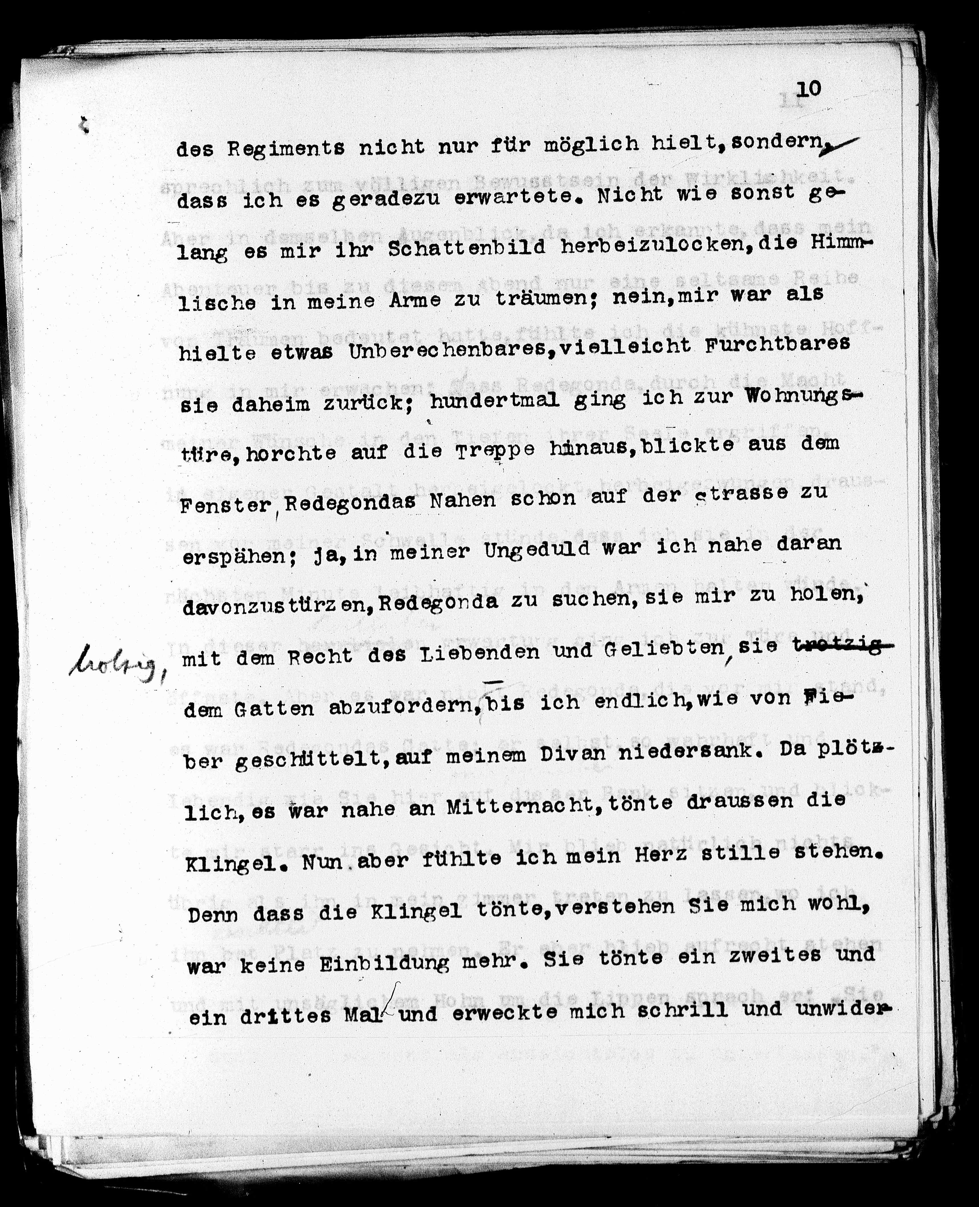 Klingel. Nun aber fühlte ich mein Herz stille stehen.