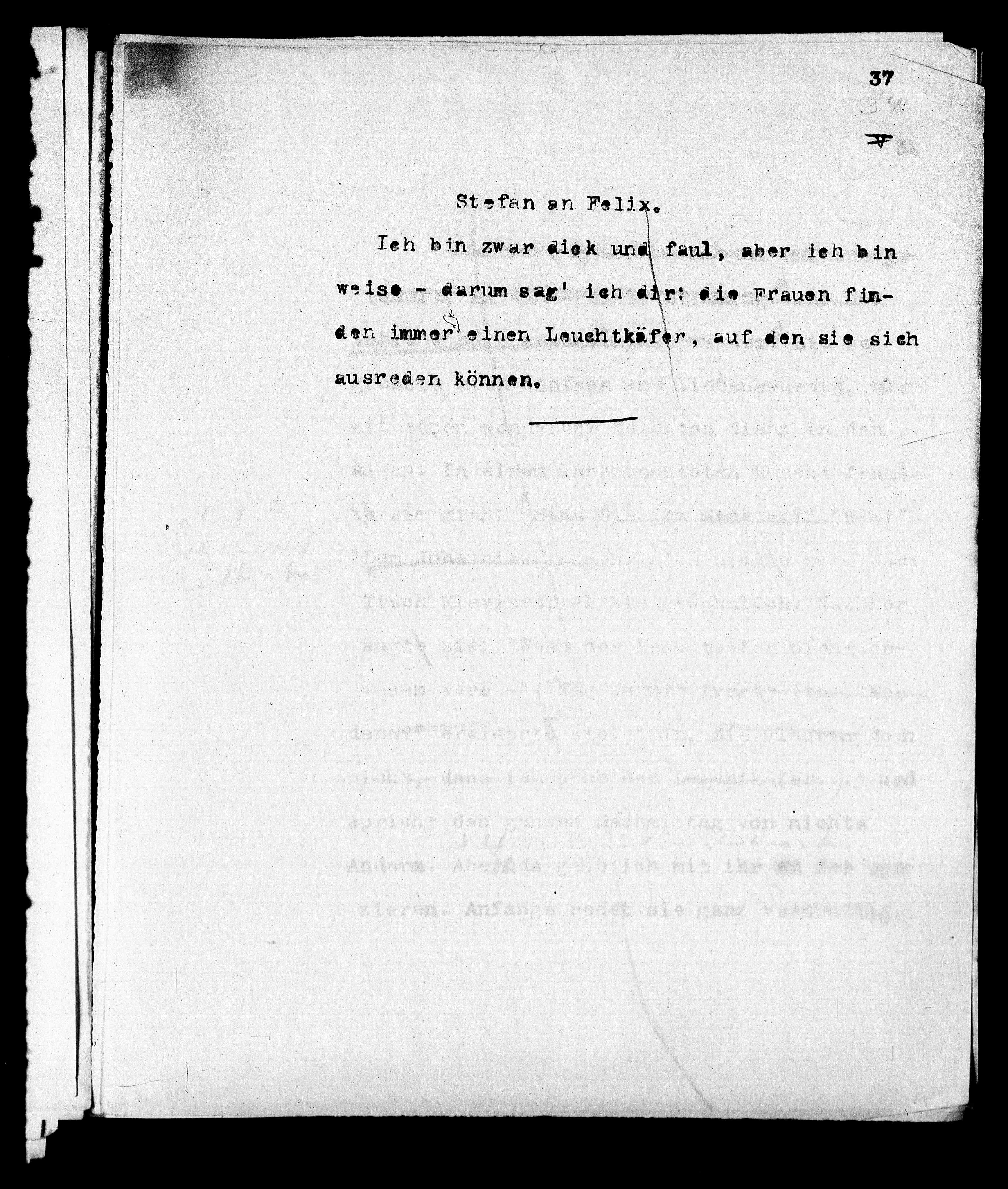 A166: Der Leuchtkäfer, Seite 38, in: Mikroverfilmung des Cambridger Nachlasses. Hg. Peter Andorfer, Martin Anton Müller und Laura Untner, Austrian Centre for Digital Humanities and Cultural Heritage, Wien 2024, https://schnitzler-mikrofilme.acdh.oeaw.ac.at/1428652_0038.html