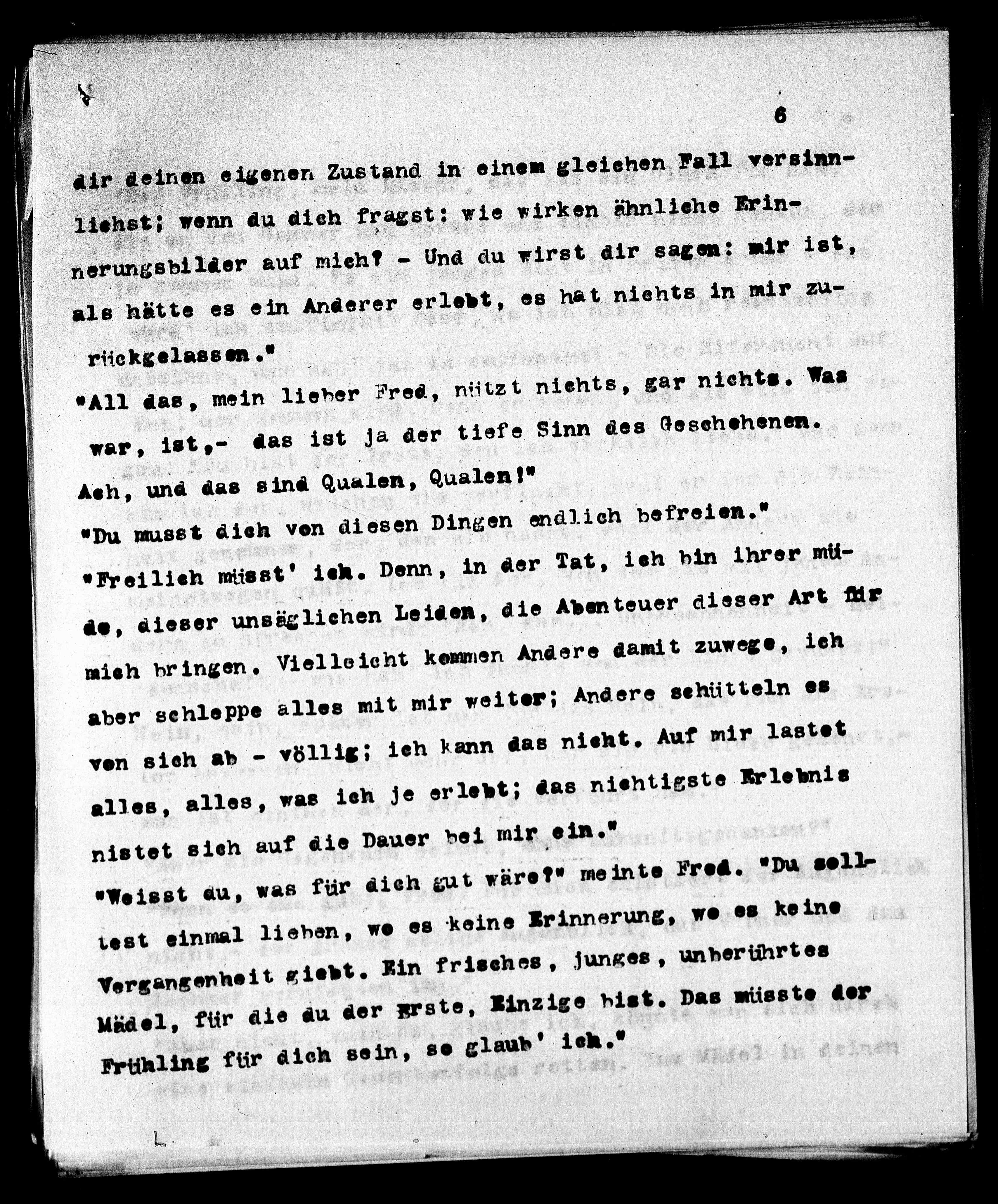 alles, alles, was ich je erlebt; das nichtigste Erlebnis