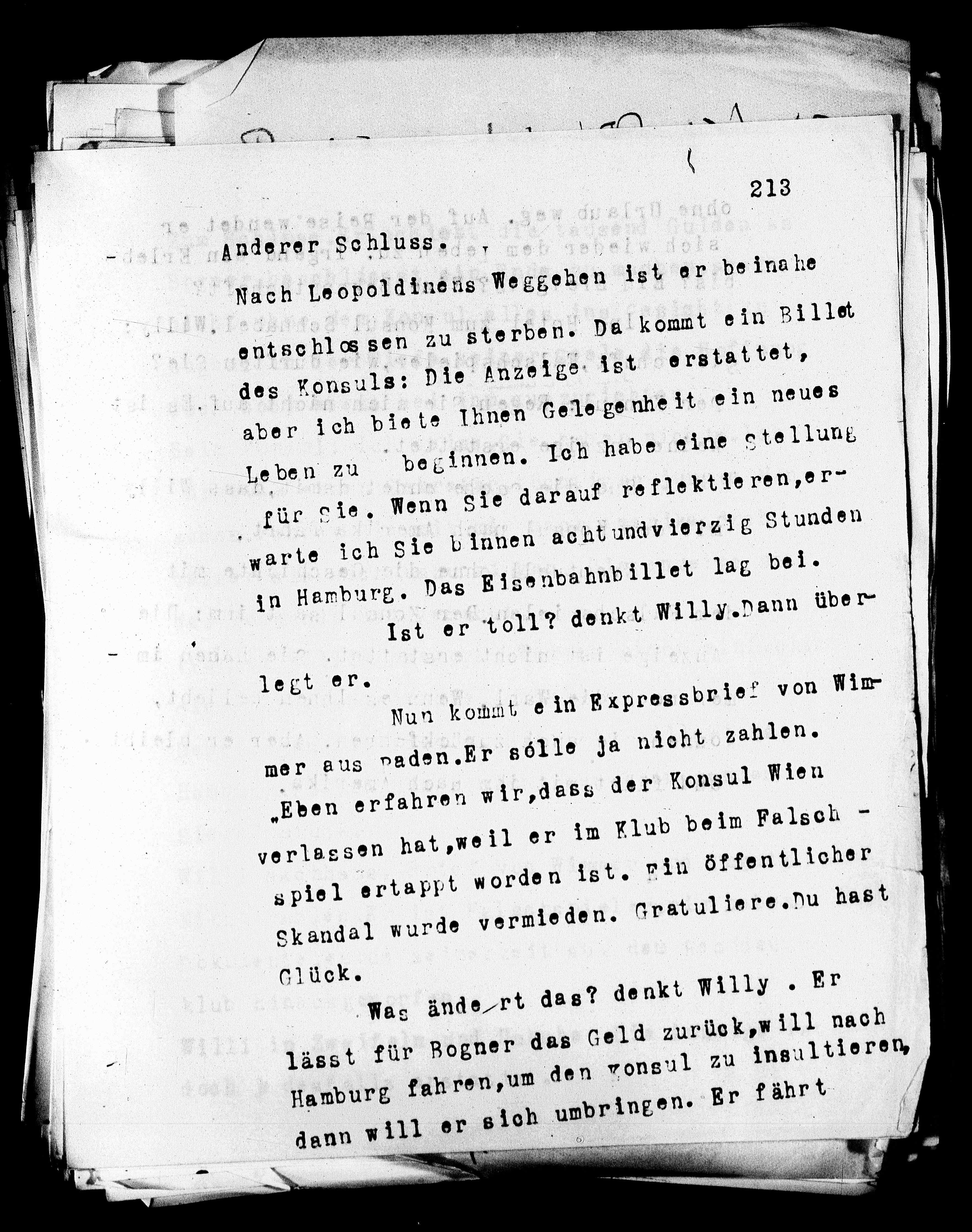 entschlossen zu sterben. Da kommt ein Billet