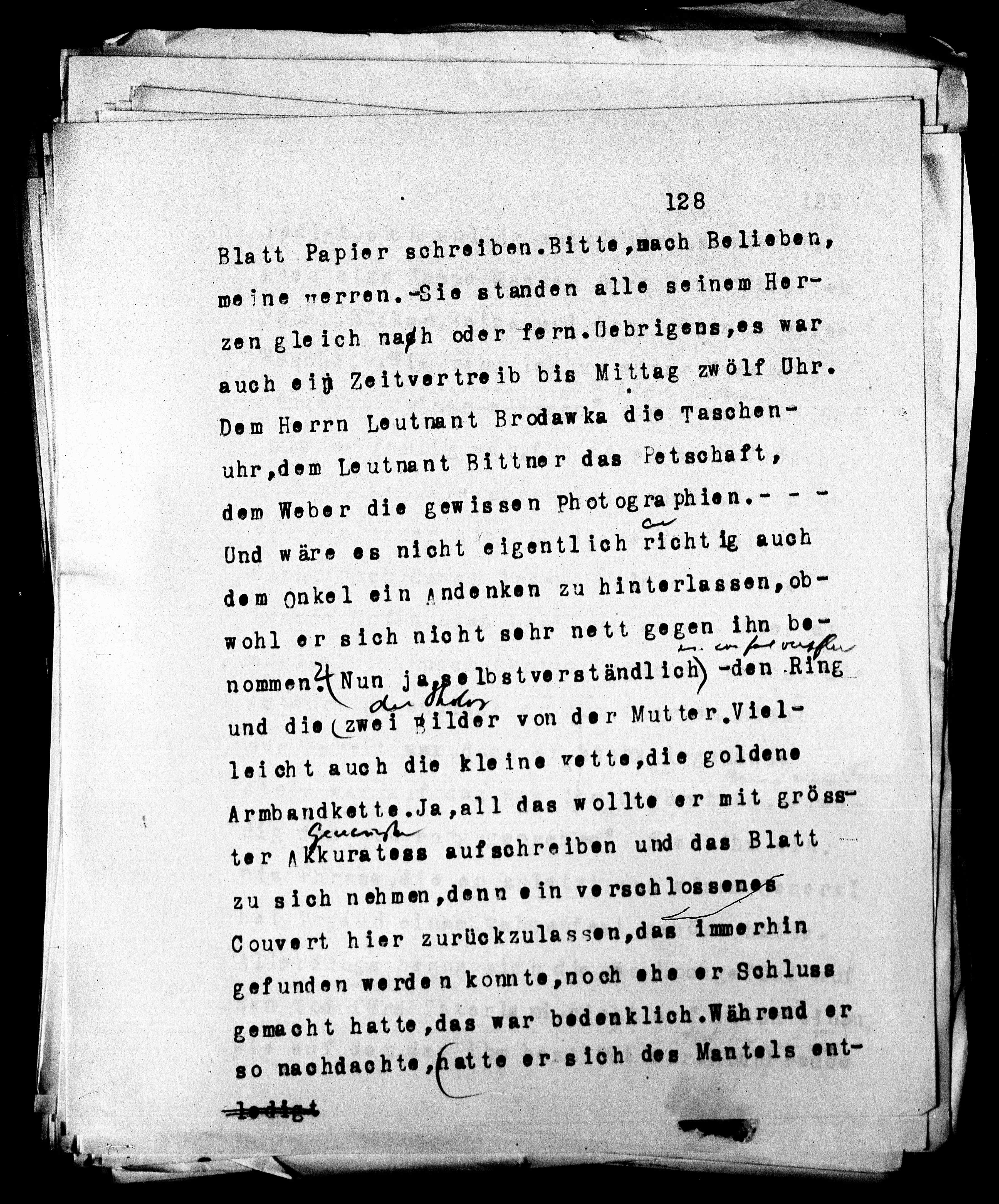 uhr,dem Leutnant Bittner das Petschaft,