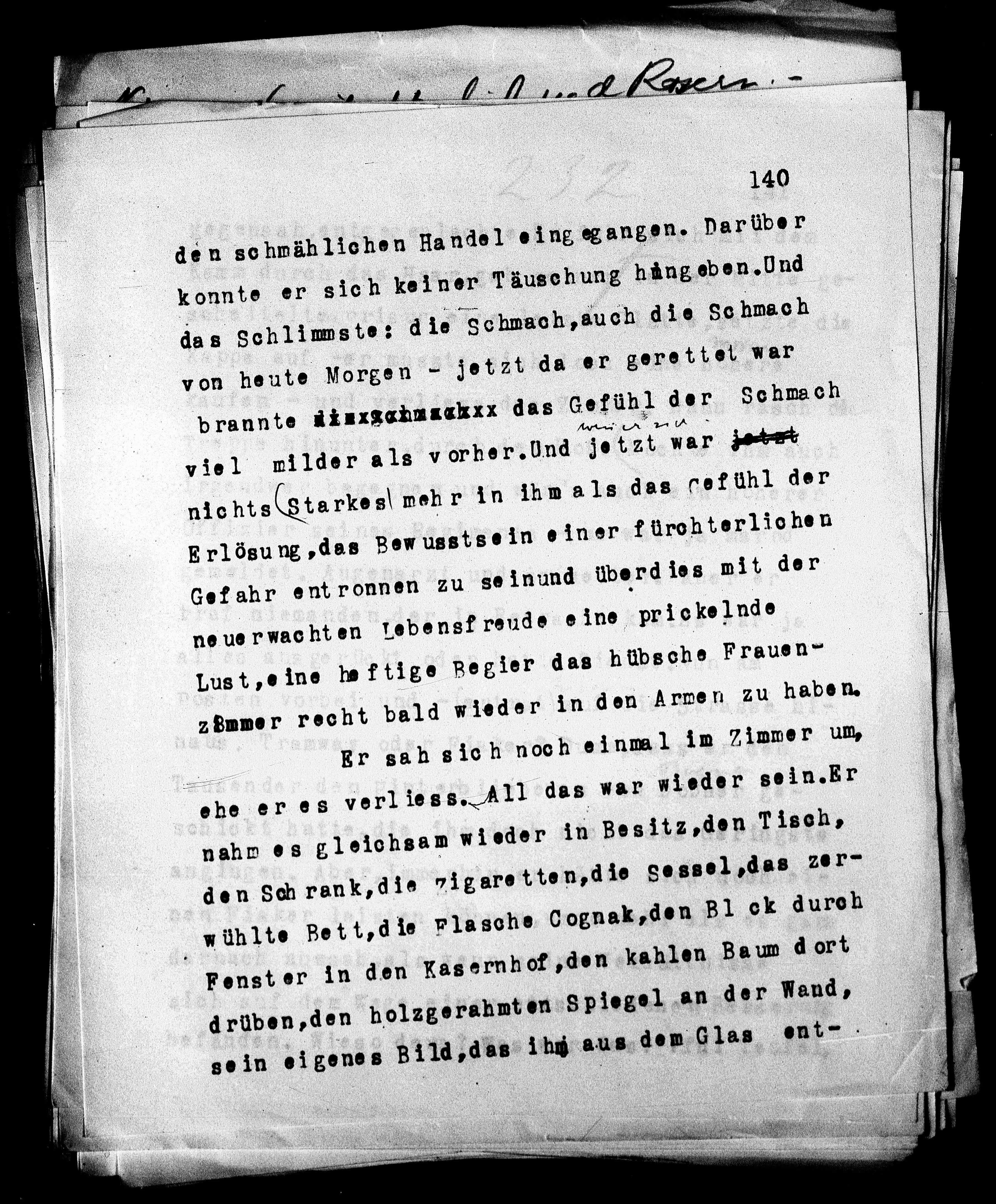 wühlte Bett, die Flasche Cognak, den Bl ck durch