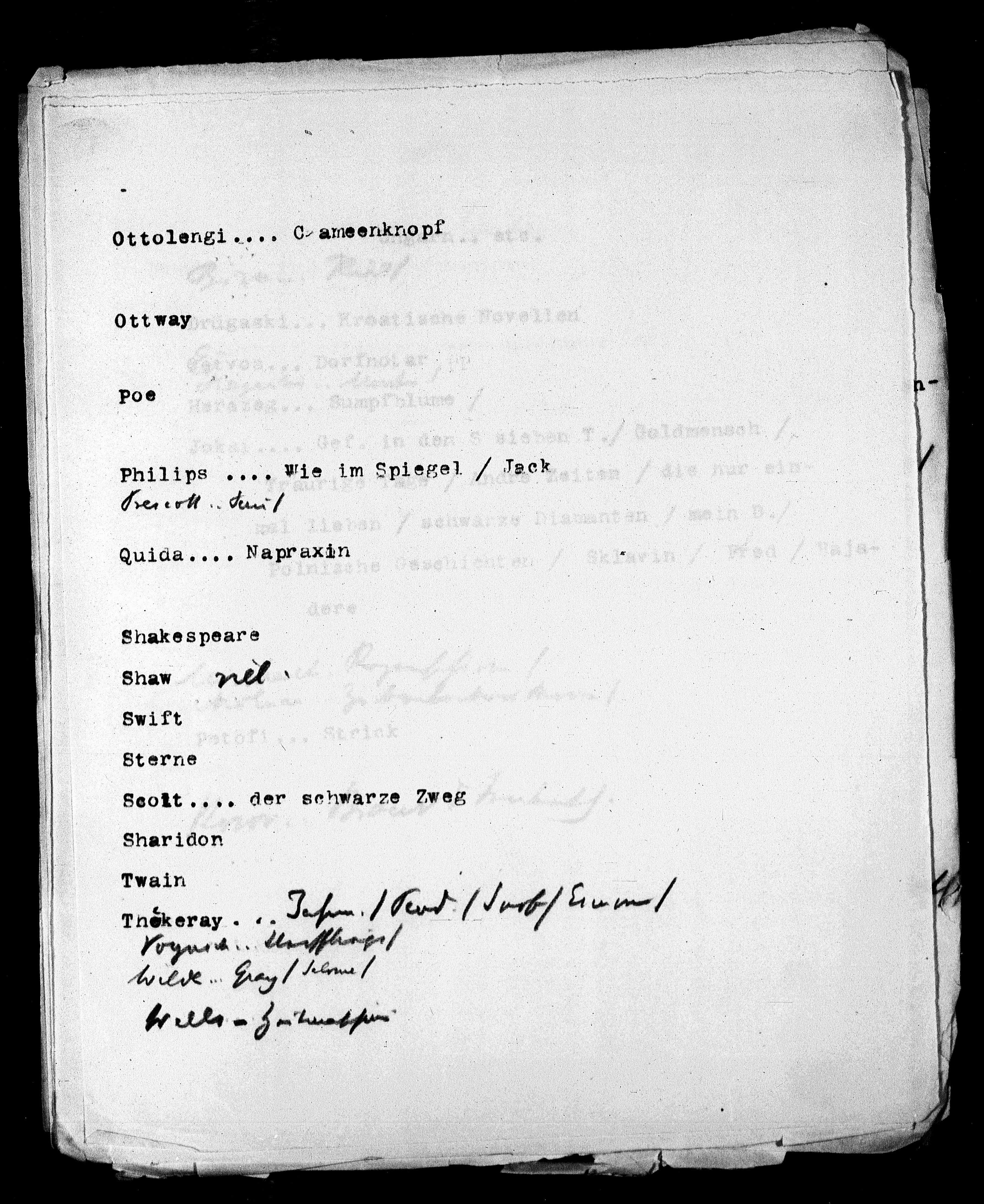 Thökeray... Jahre. / Verd. / Jacob/ Ermin/