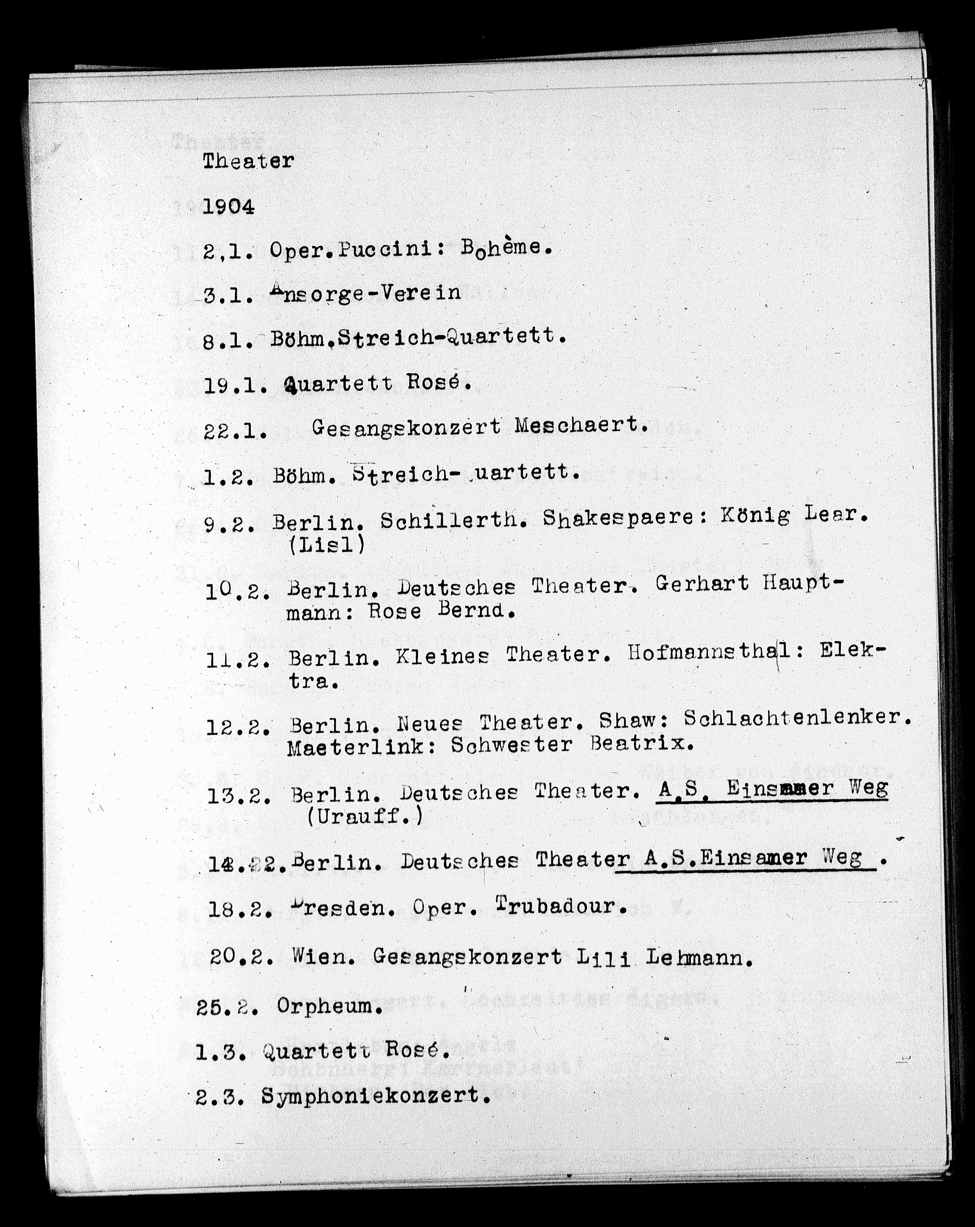 13.2. Berlin. Deutsches Theater. A.S. Einsmmer Weg