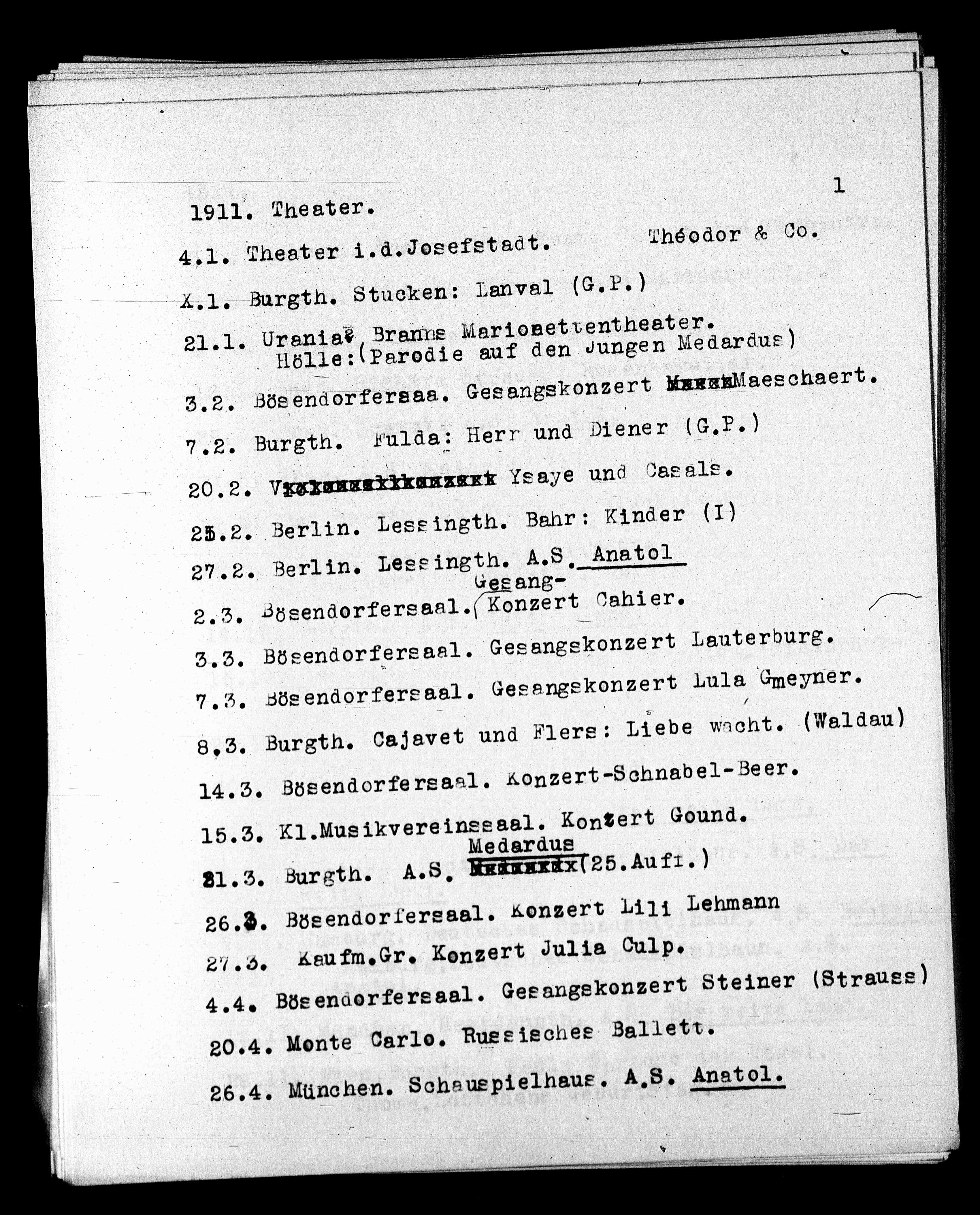 26.4. München. Schauspielhaus. A.S. Anatol.