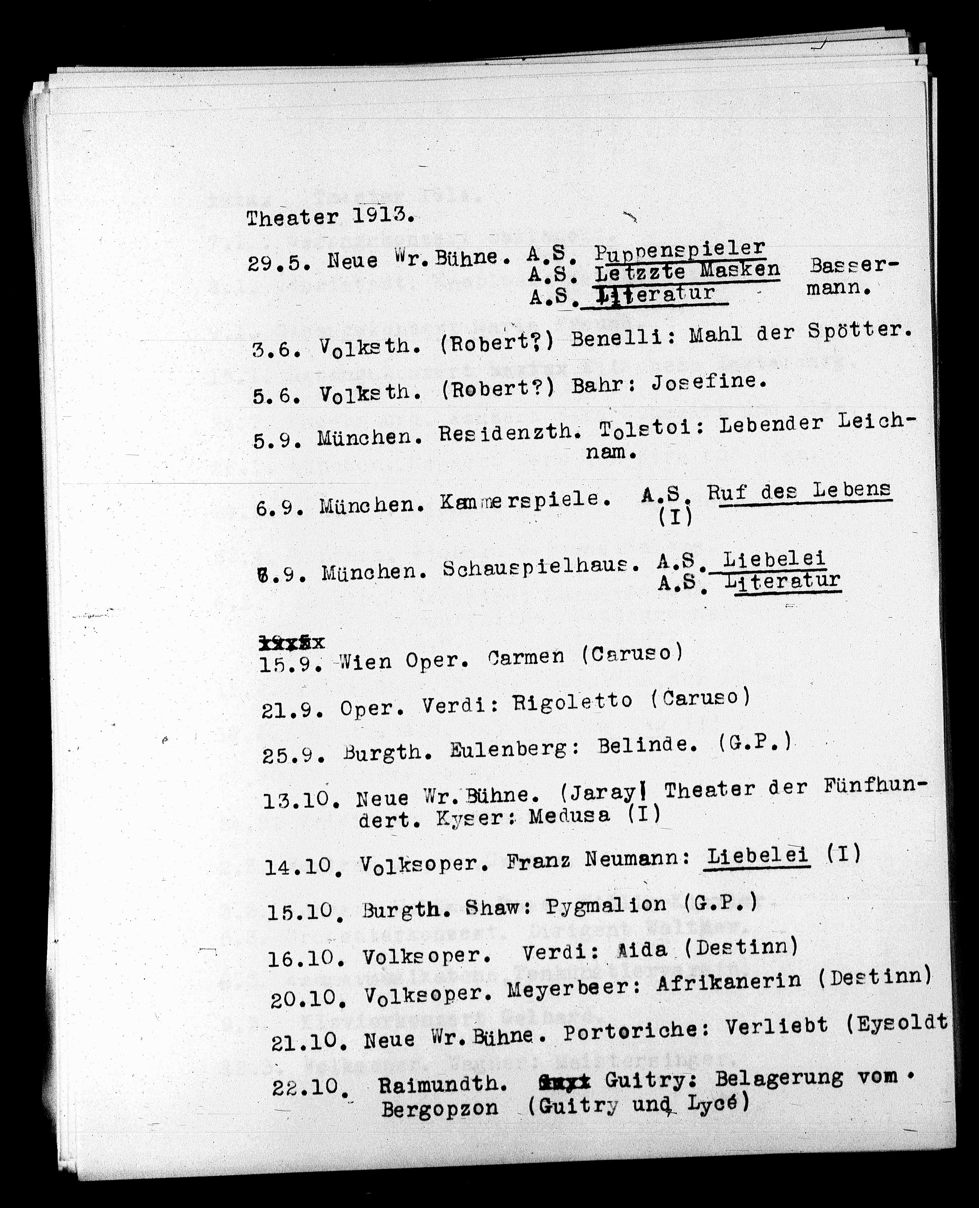 6.9. München. Schauspielhaus. A.S. Liebelei