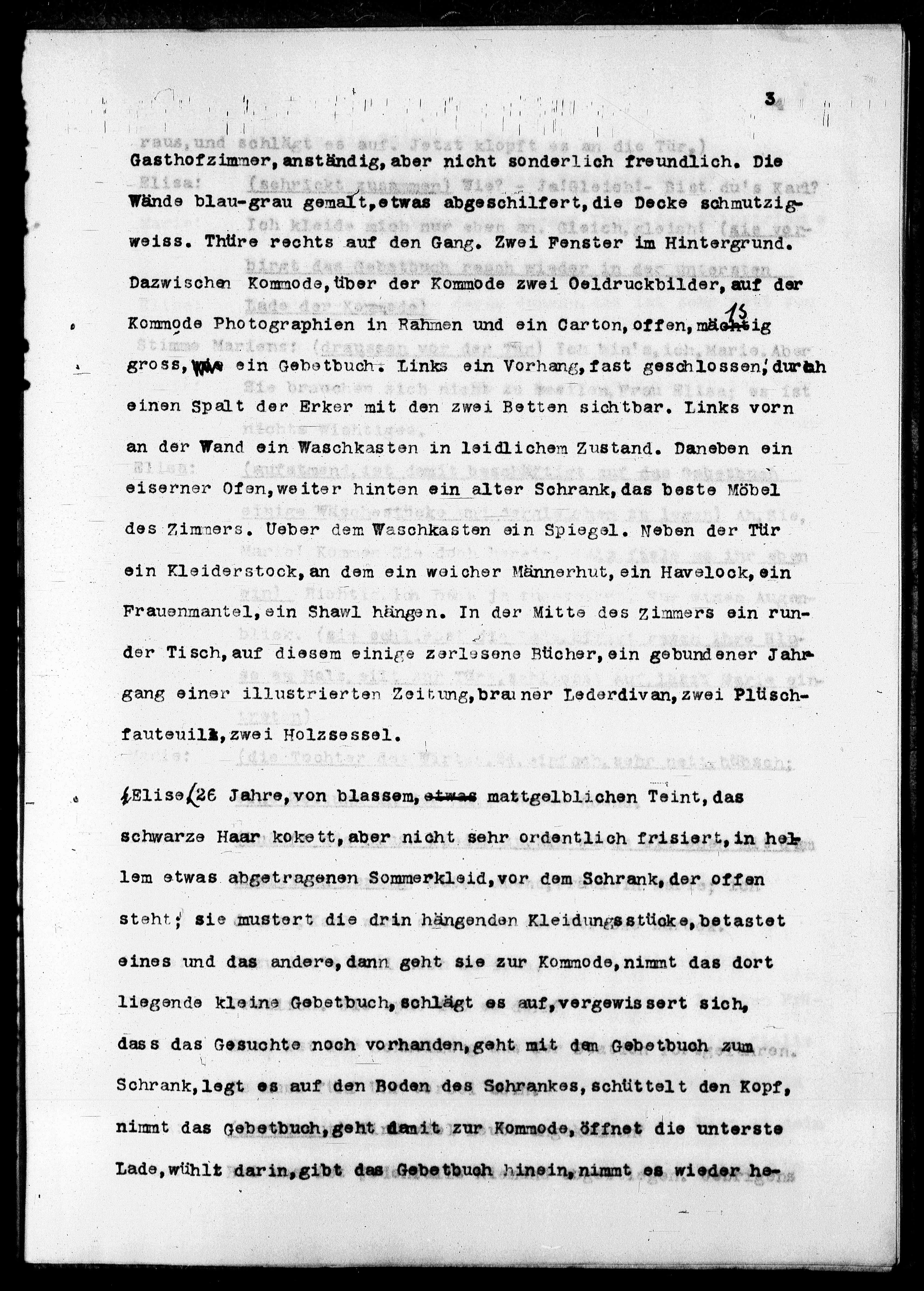 des Zimmers. Ueber dem Waschkasten ein Spiegel. Neben der Tür