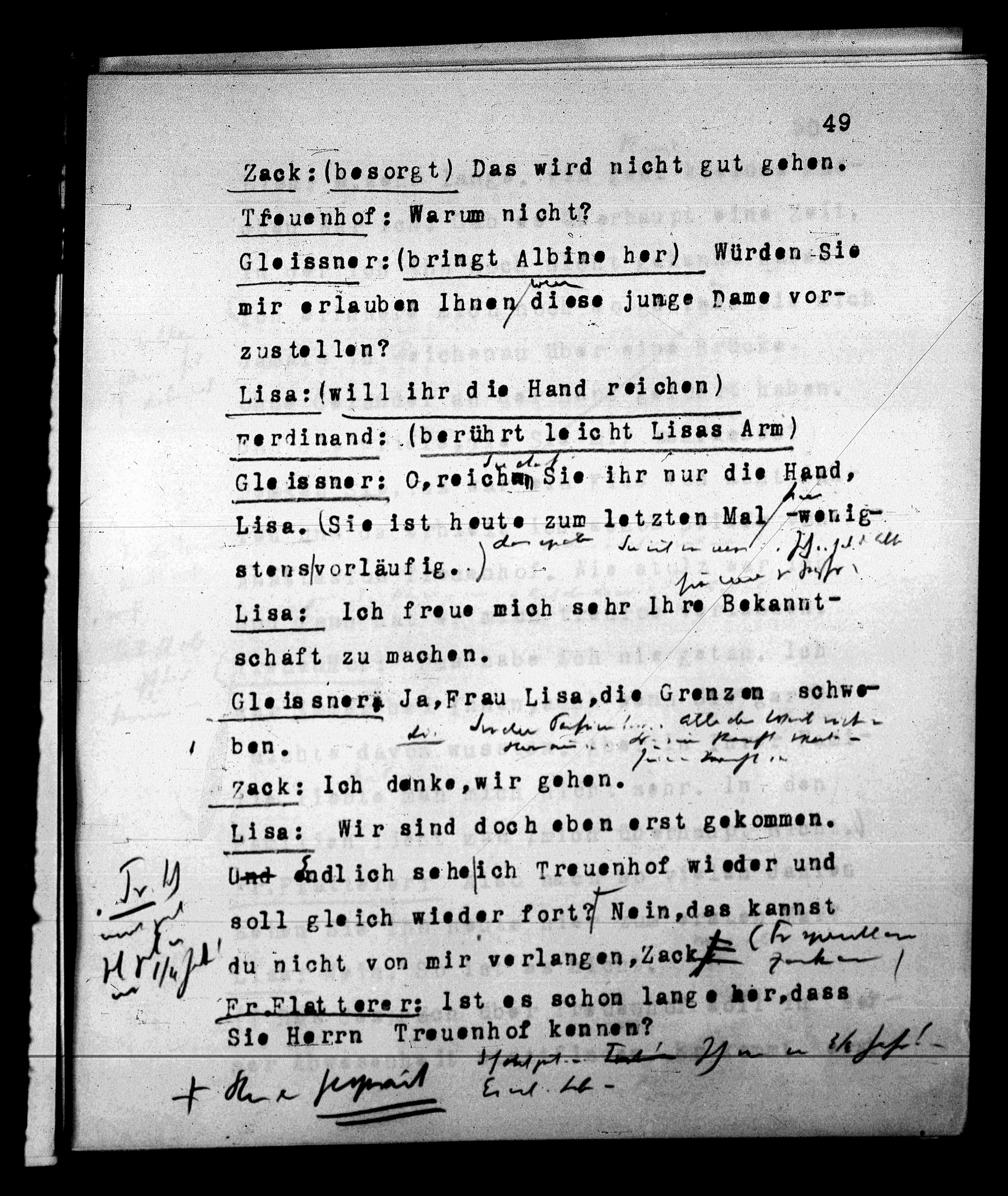 Gloissner: (bringt Albine her) Würden Sie