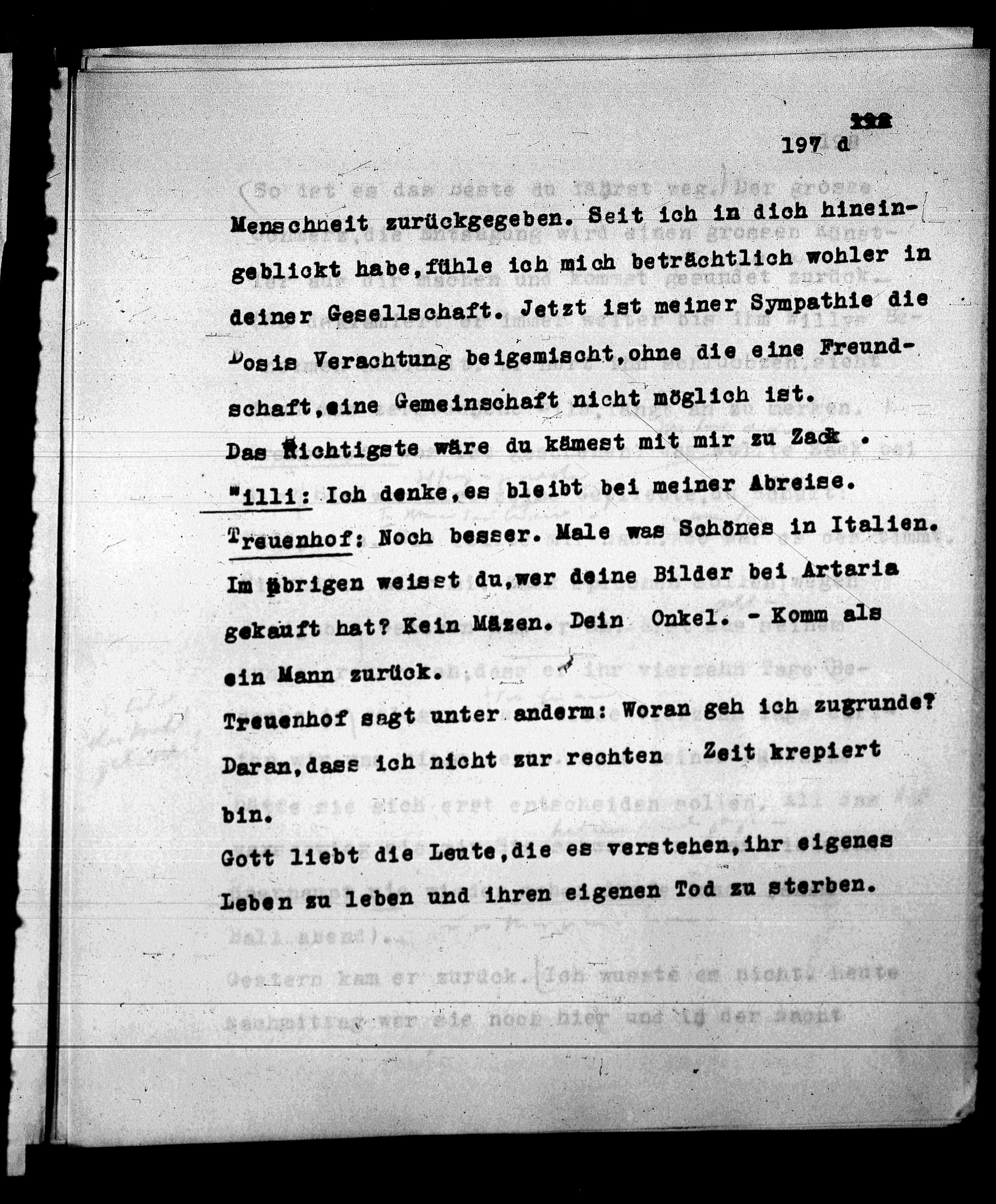 Treuenhof sagt unter anderm: Woran geh ich zugrunde?