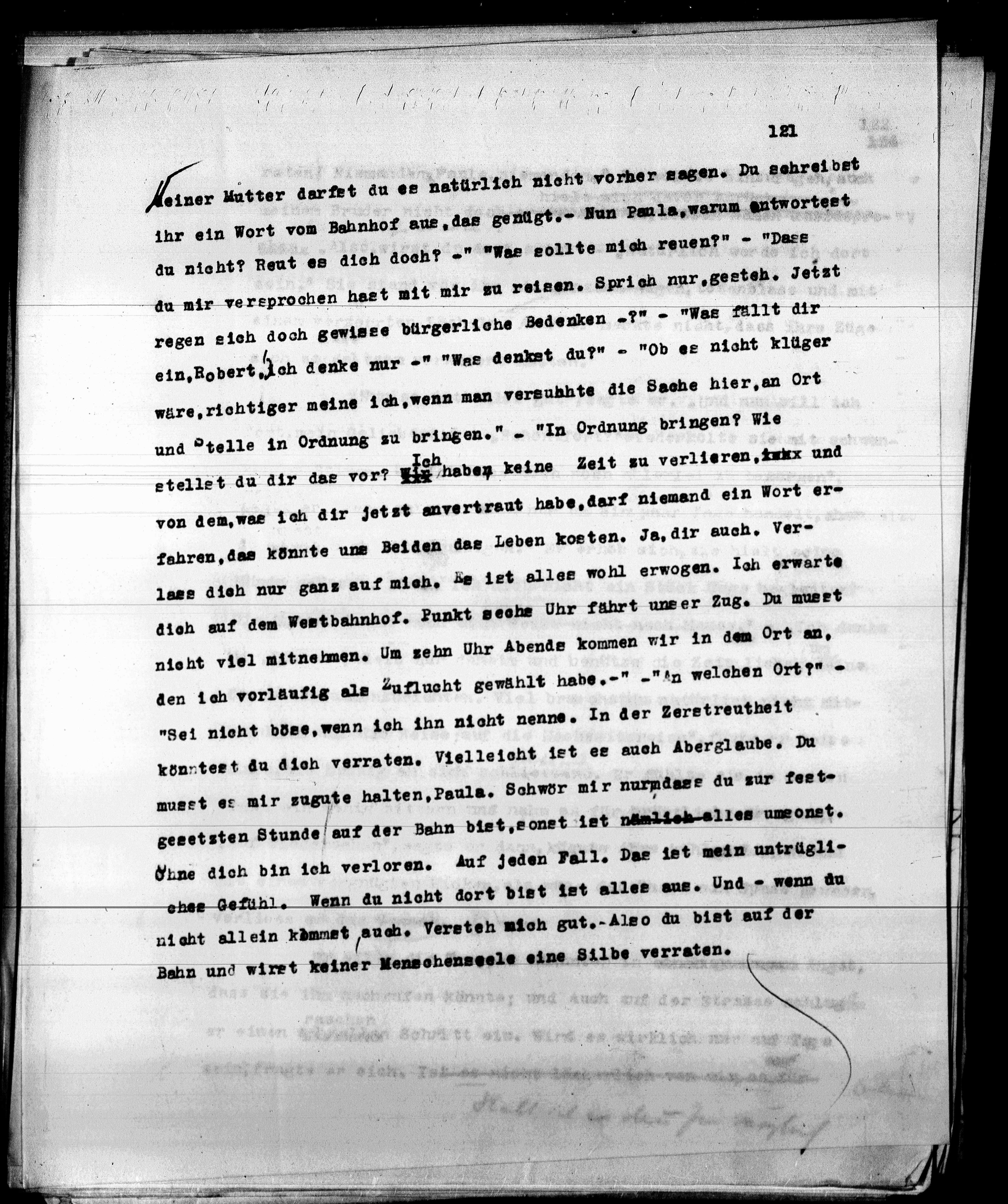 ihr ein Wort vom Bahnhof aus, das genügt.- Nun Paula, warum antwortest