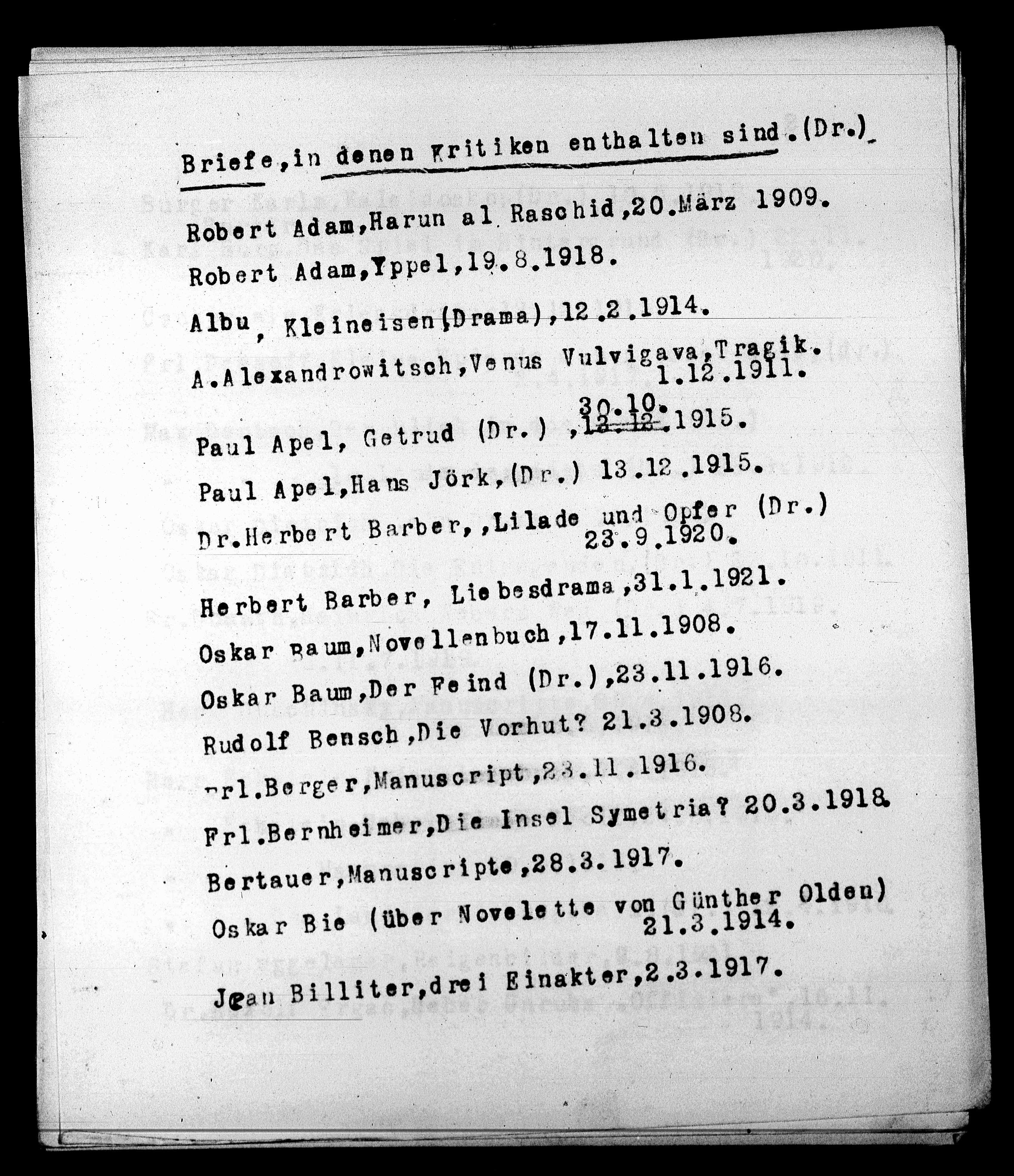 Briefe, in denen Kritiken enthalten sind. (Dr.)