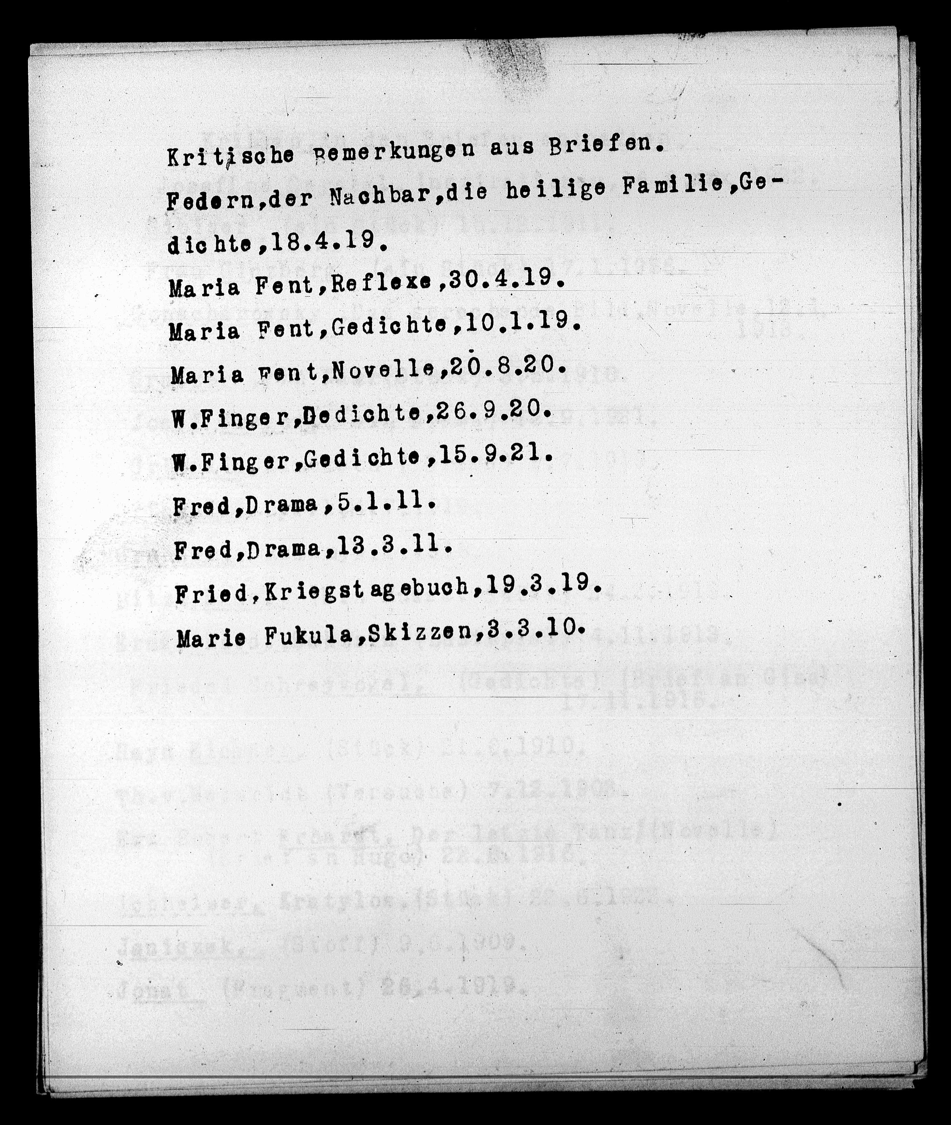 Maria Fent,Gedichte, 10.1.19.