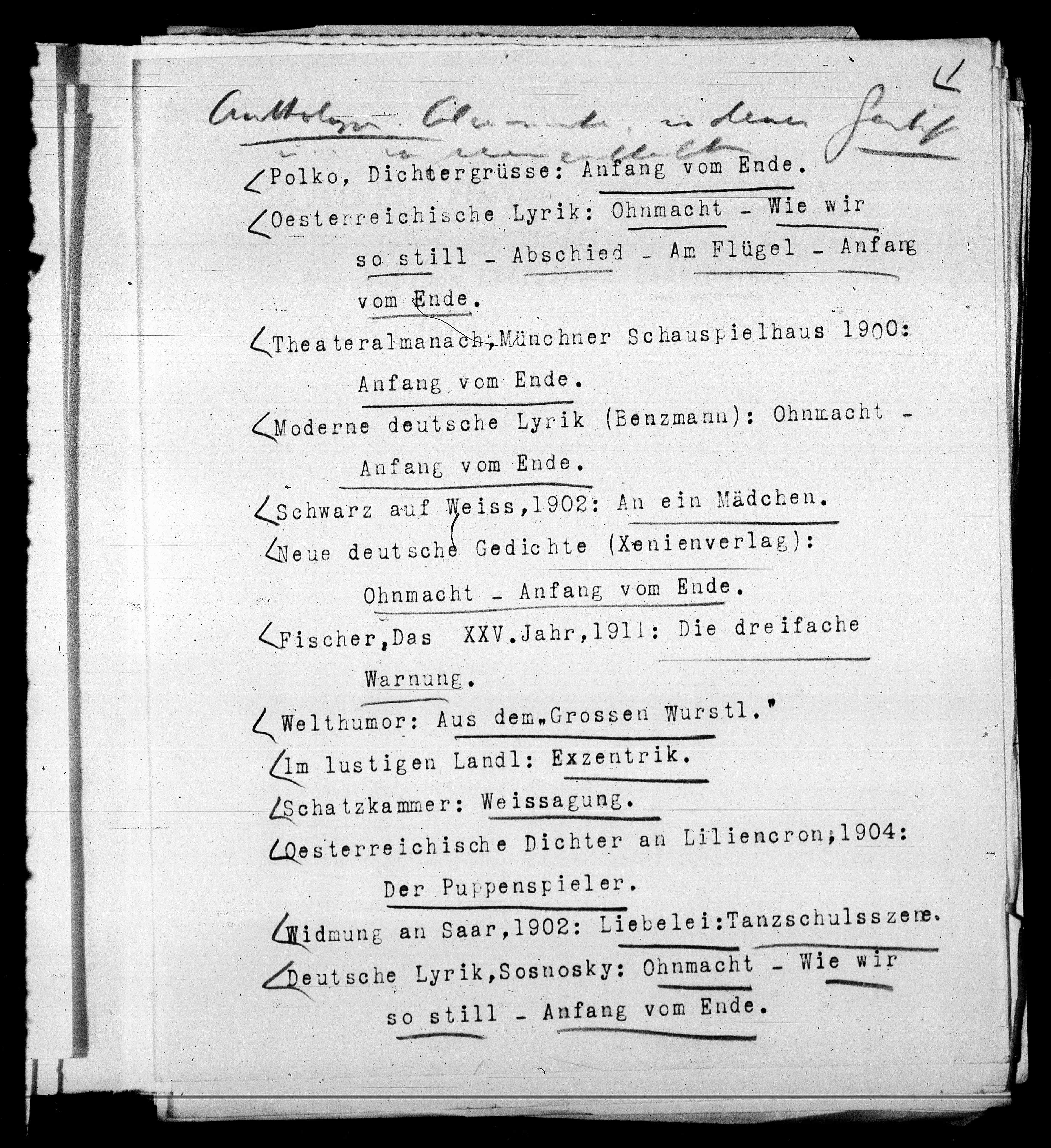 (Moderne deutsche Lyrik (Benzmann): Ohnmacht