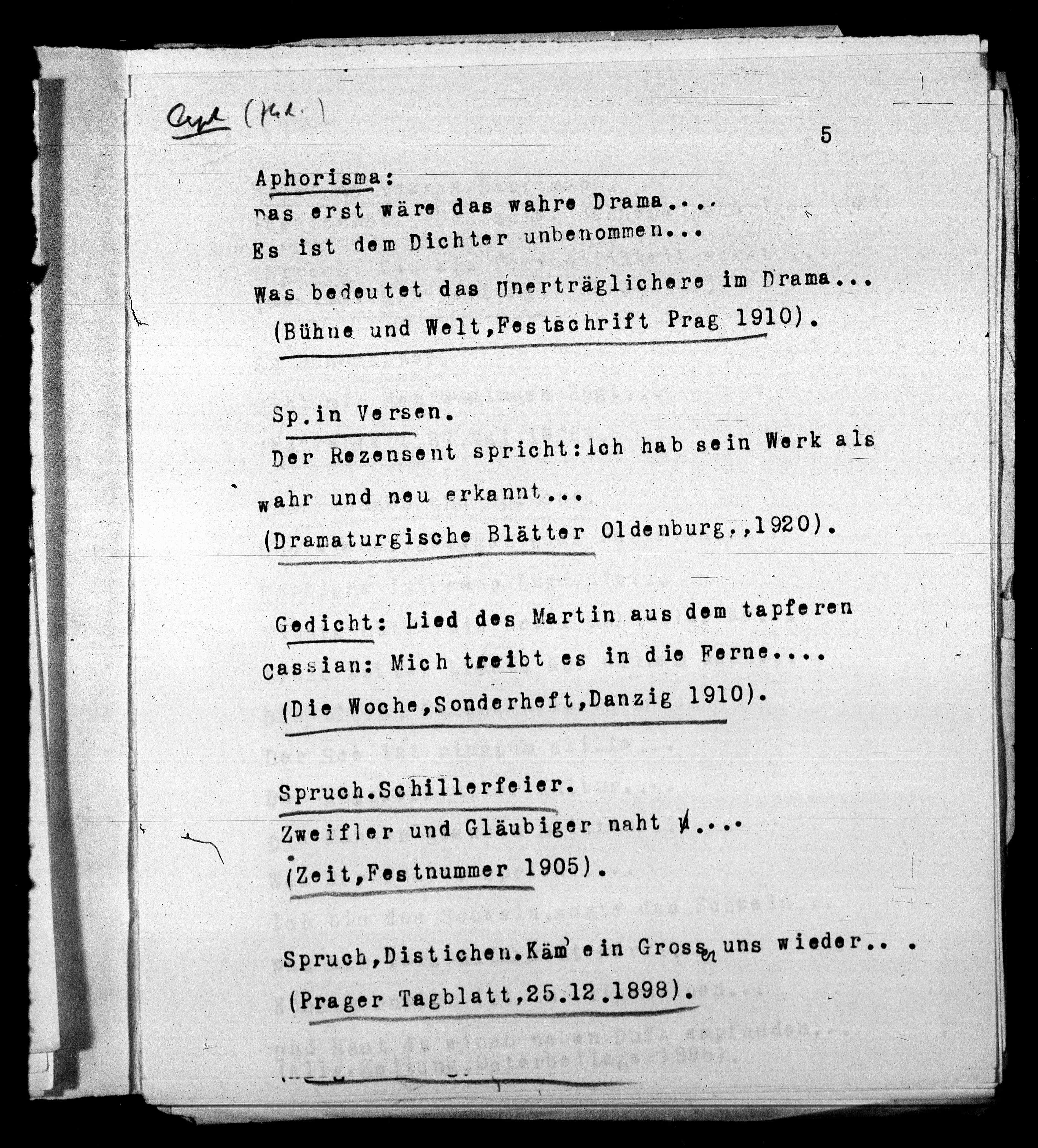 (Bühne und Welt, Festschrift Prag 1910).