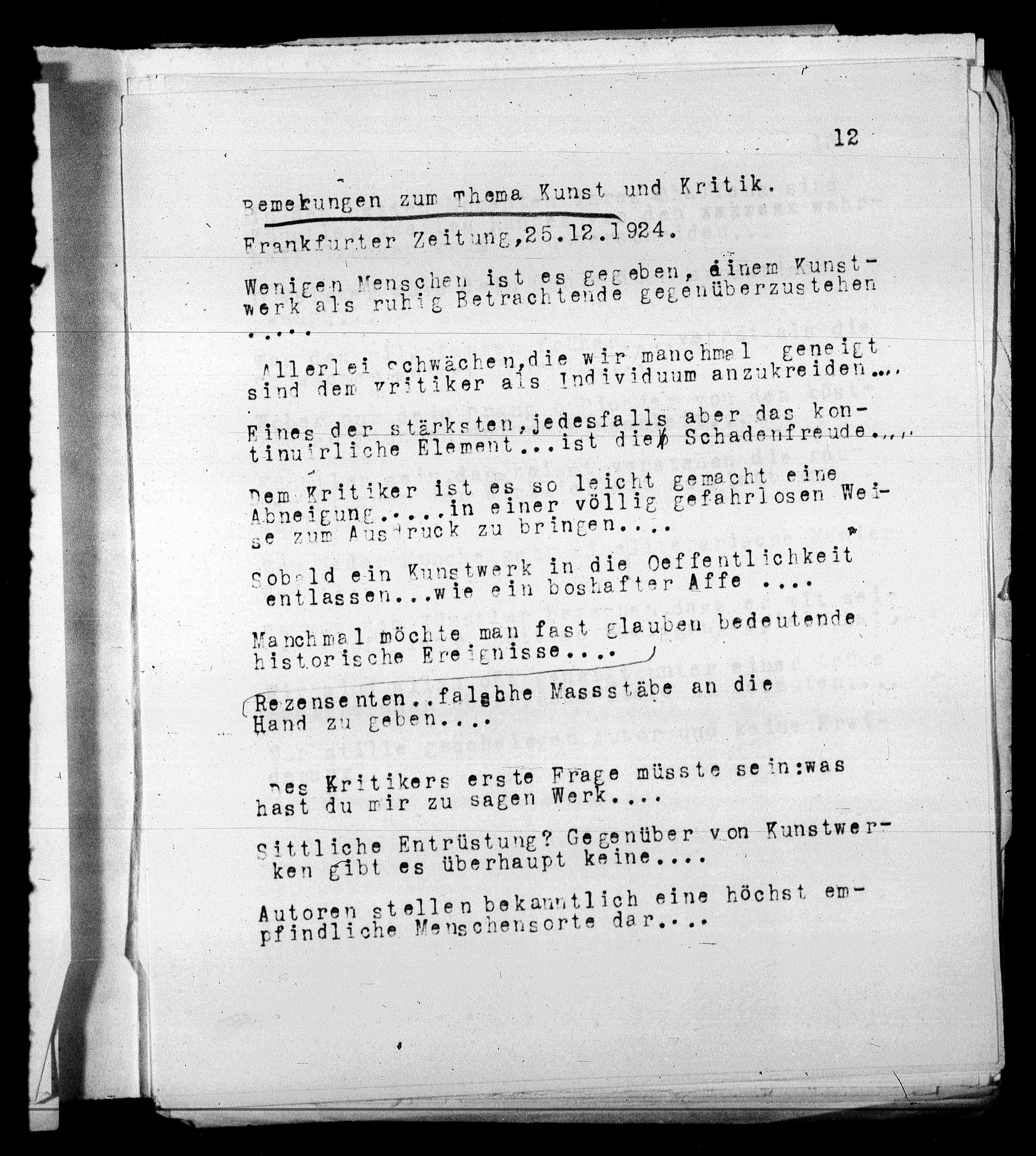 Bemekungen zum Thema Kunst und Kritik