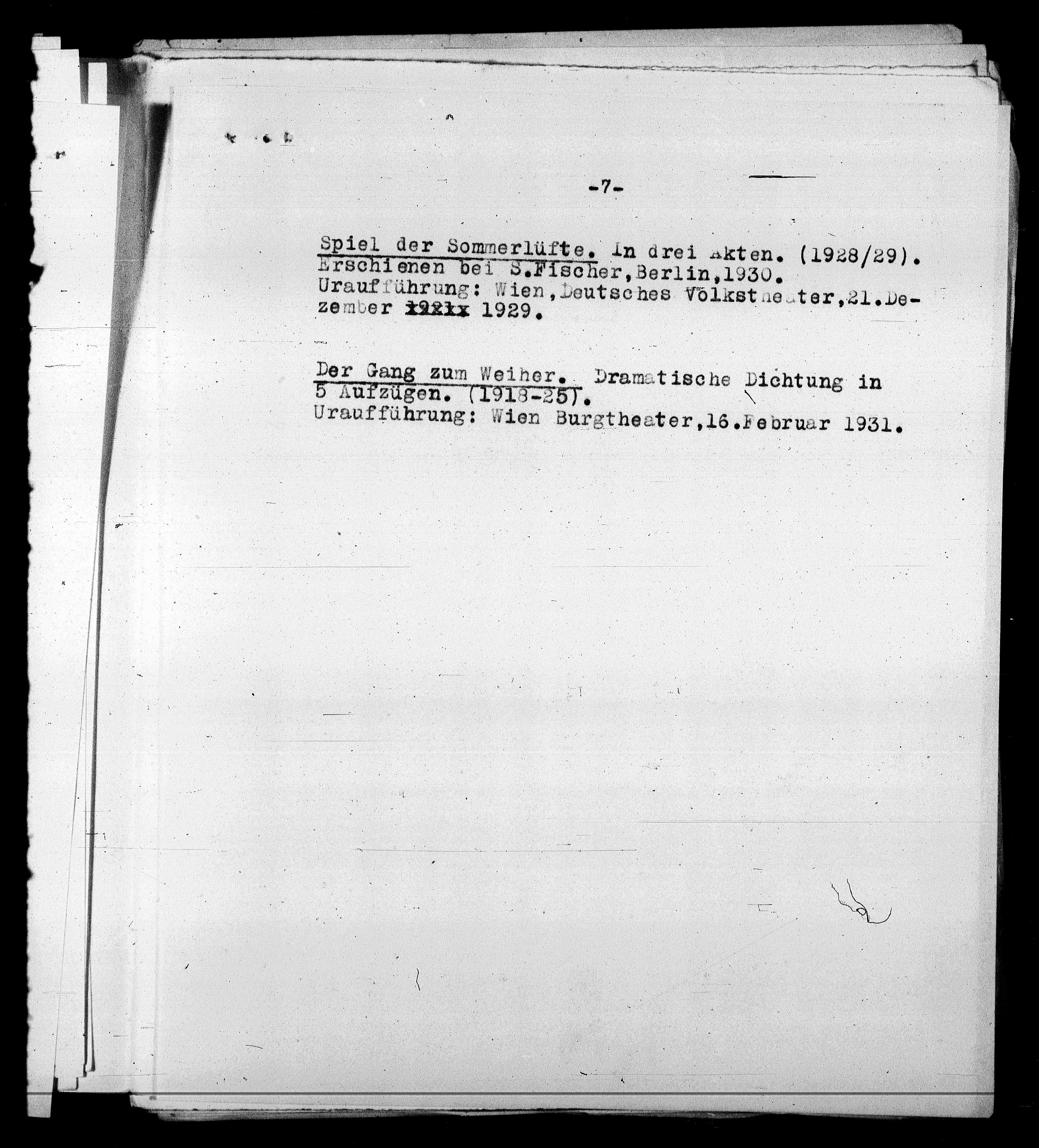 Spiel der Sommerlüfte. In drei Akten. (1928/29).