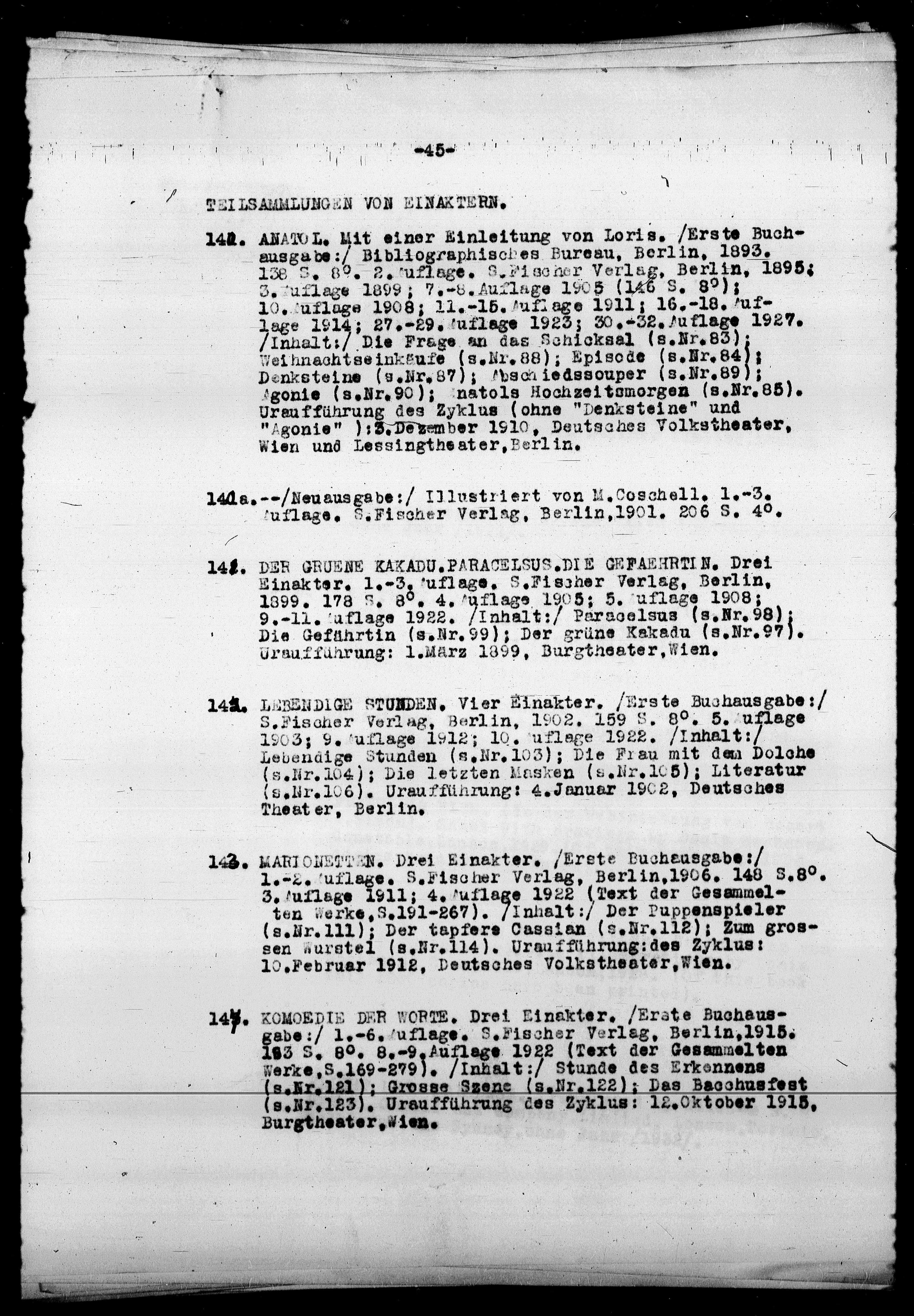 Einakter. 1.-3, uflage. S.Fischer Verlag, Berlin,