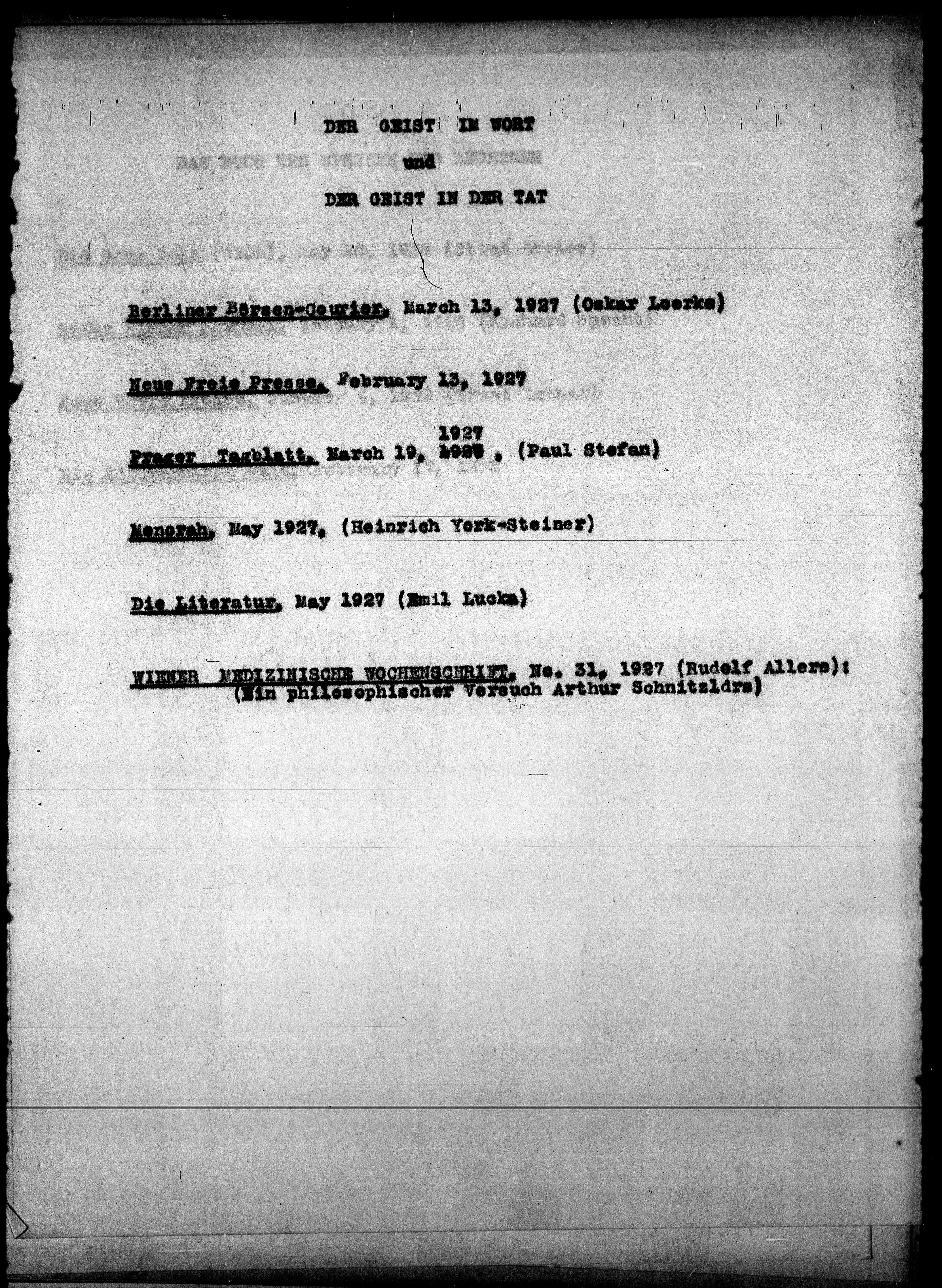Prager. Tagblatt, March 19, 1037, (Paul Stefan)
