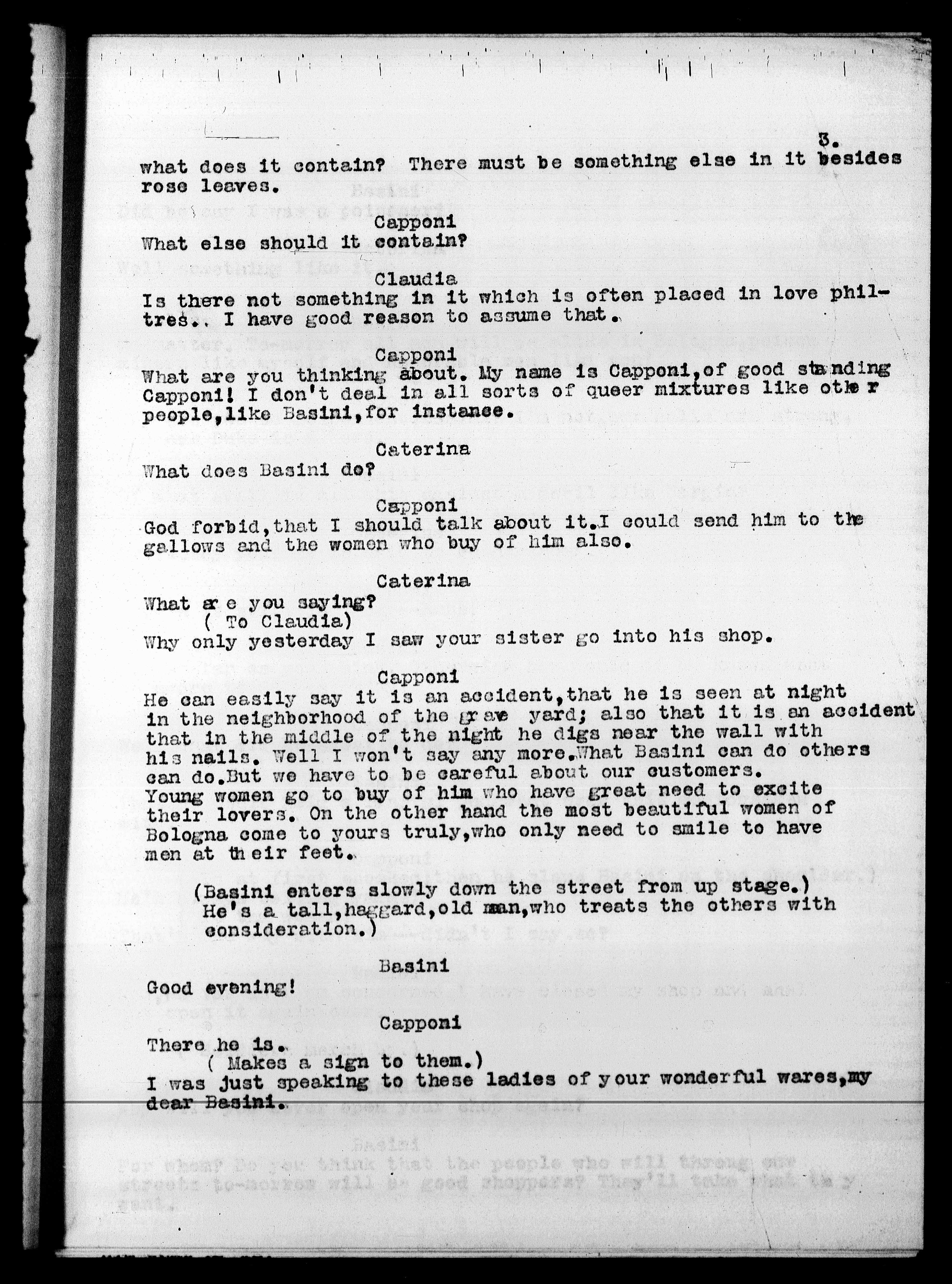 (Basini enters slowly down the street from up stage.)