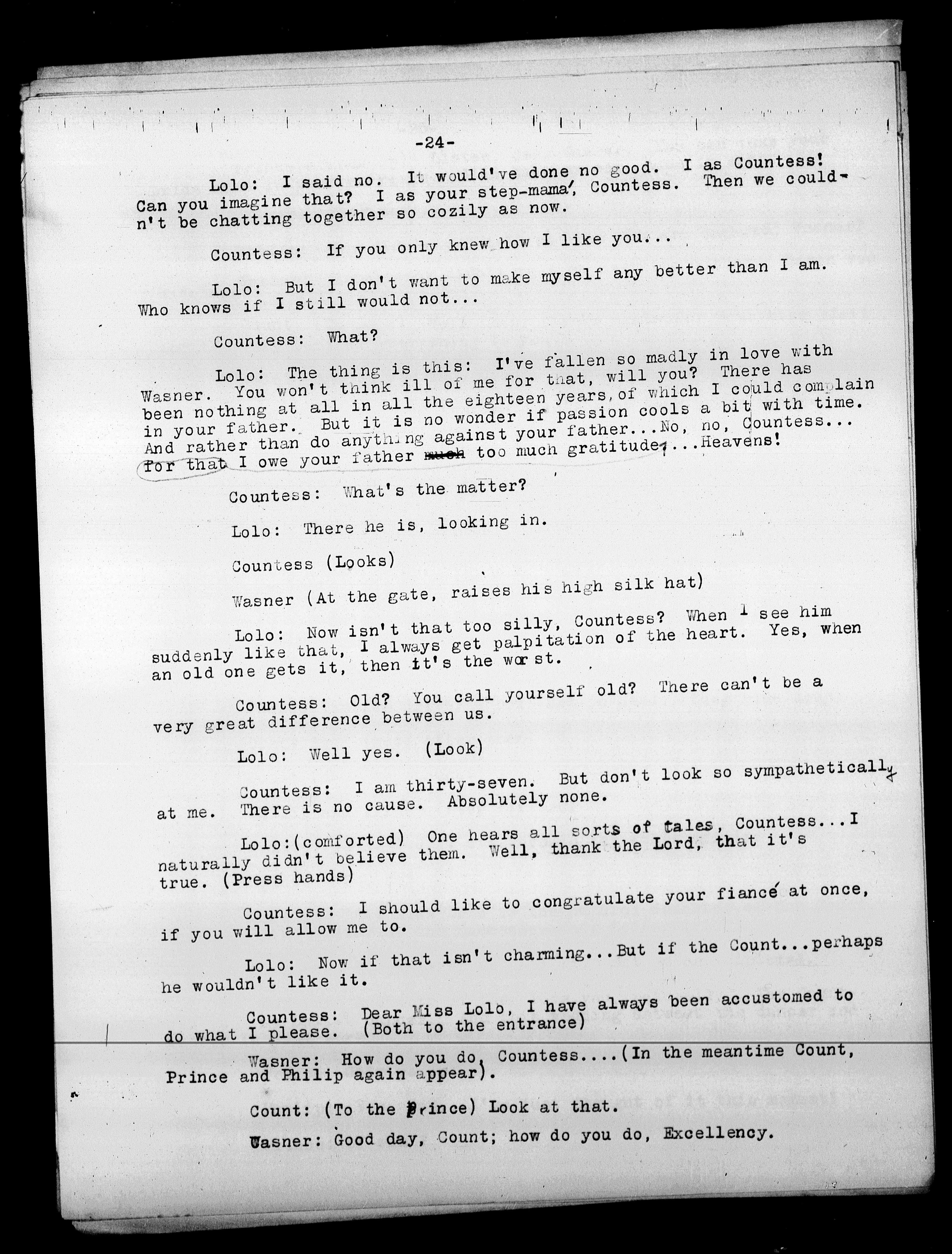 Countess: Dear Miss Lolo, I have always been accustomed to