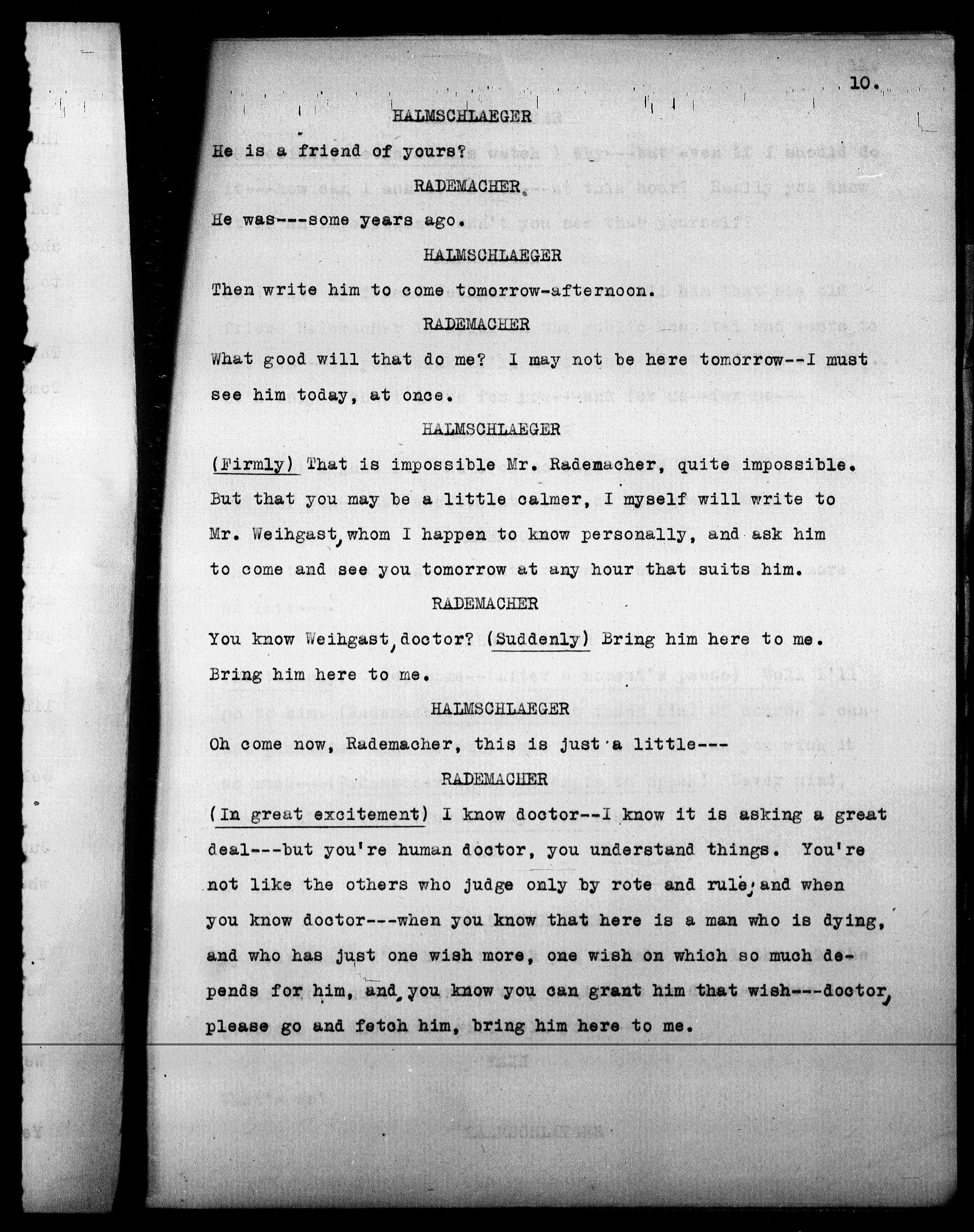 (Firmly) That is impossible Mr. Rademacher, quite impossible.