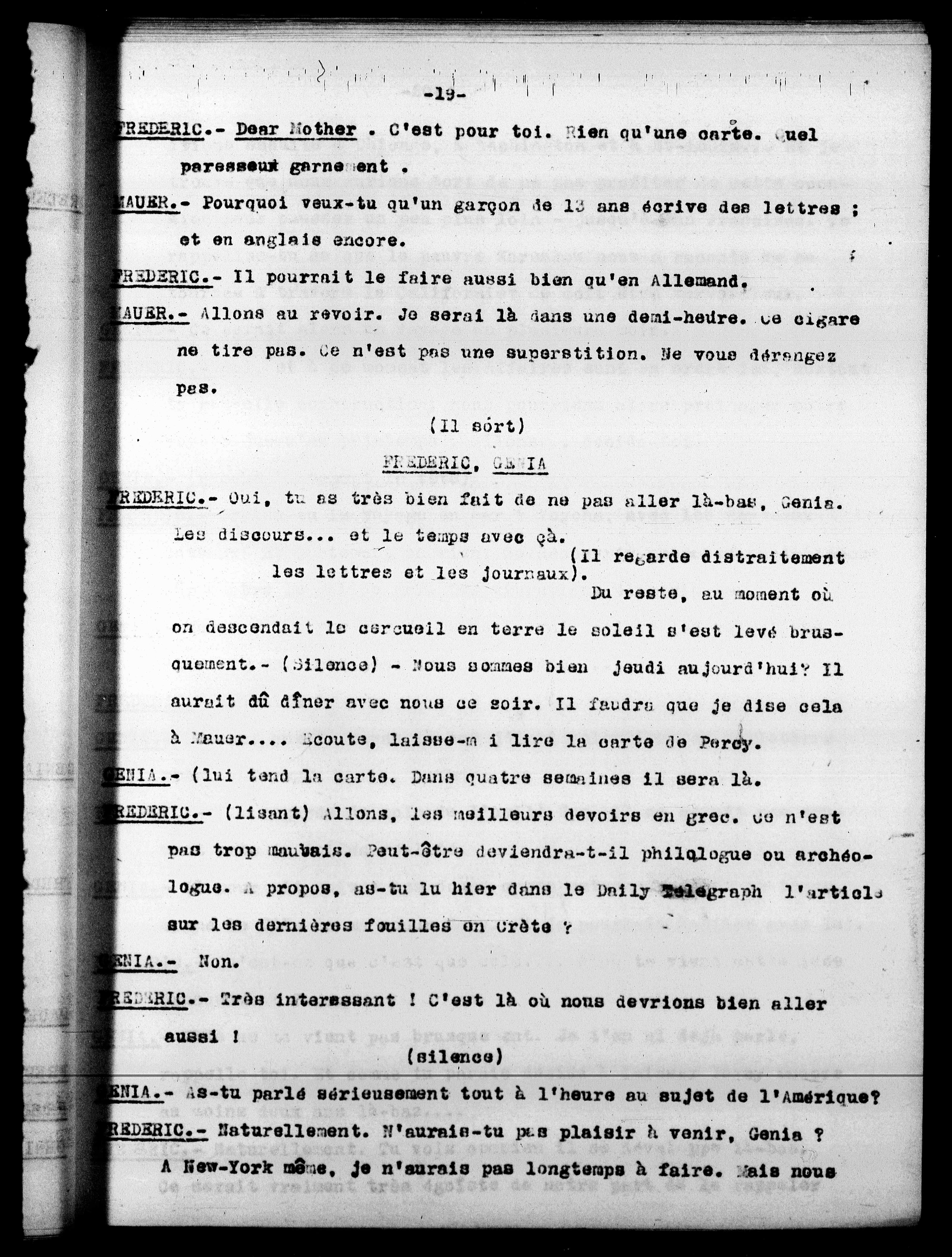 PREDERIC. - Dear Mother. C'est pour toi. Rien qu'une carte. Quel