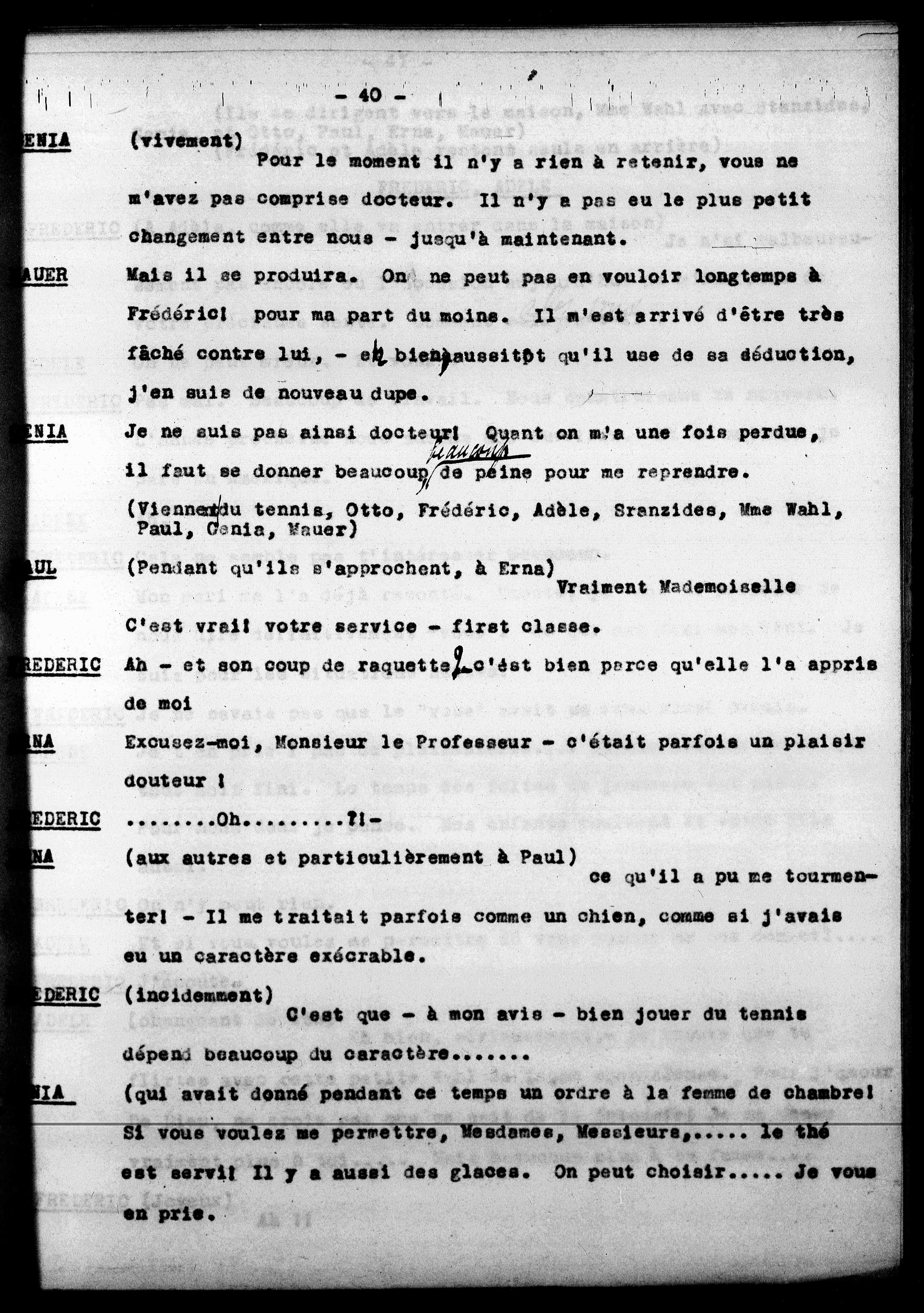 (Viennemdu tennis, Otto, Frédéric, Adèle, Sranzides, Mme Wahl,