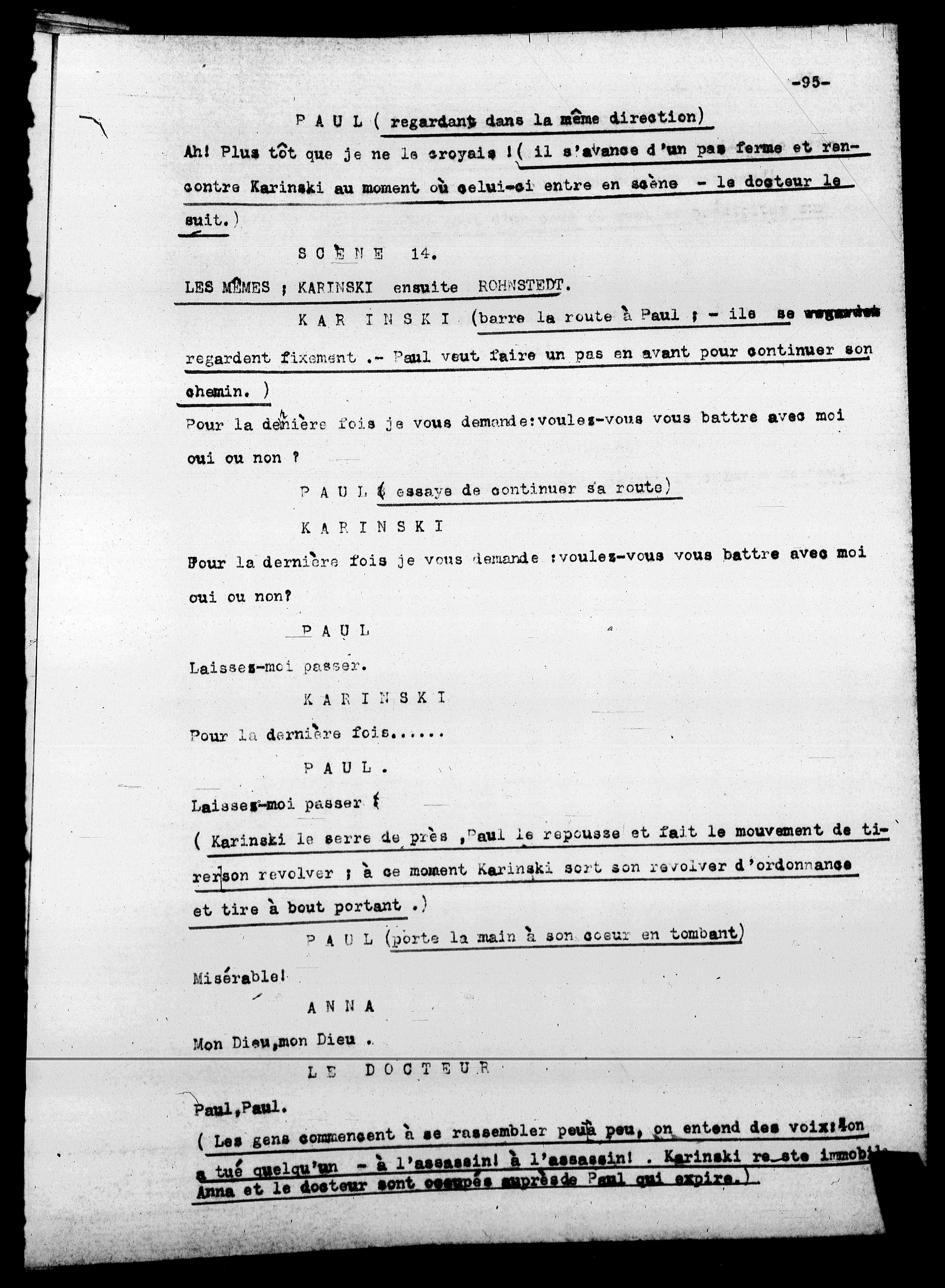 (Karinski le serre de près,Paul le repousse et fait le mouvement de ti-