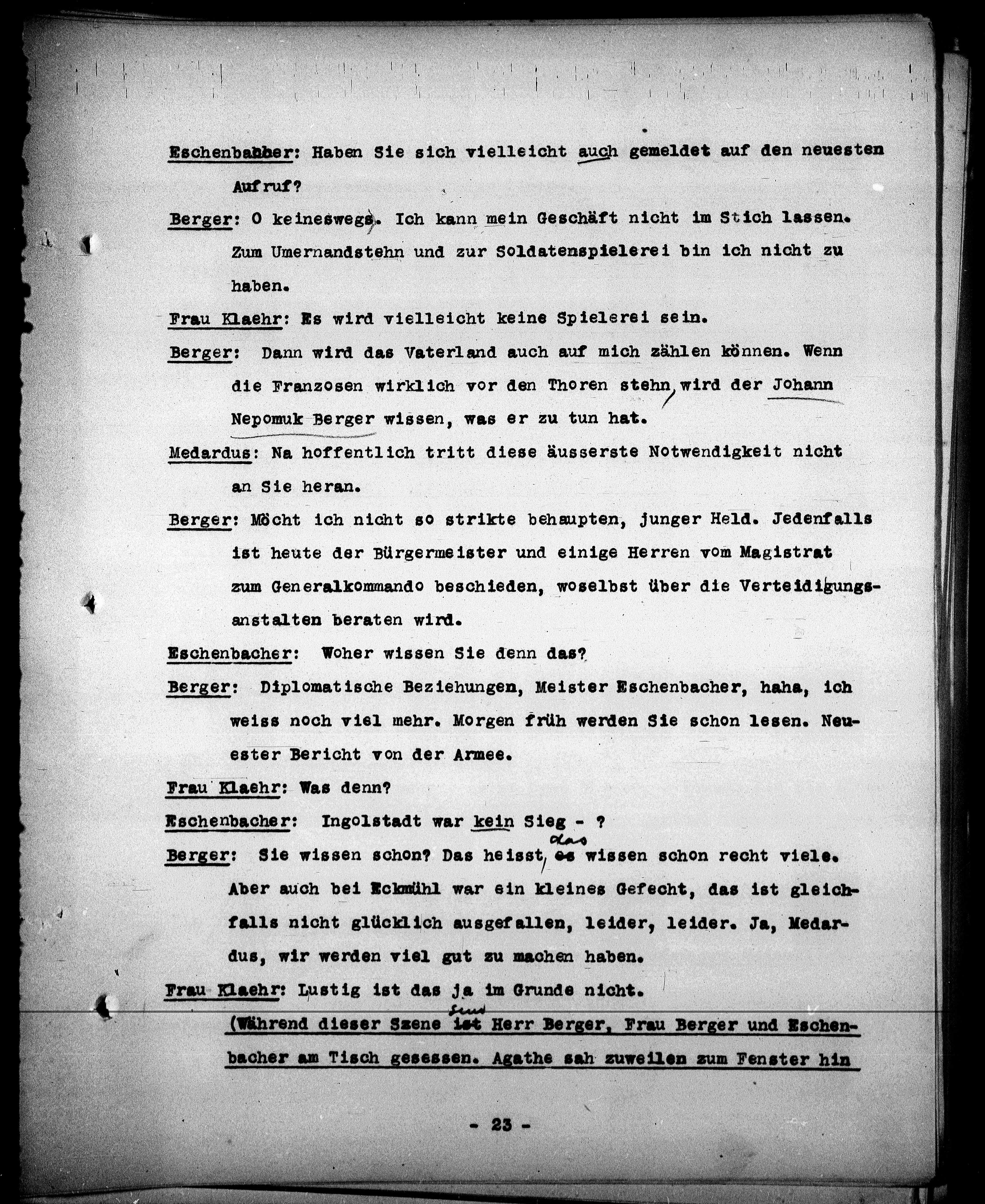 (Während dieser Szene ist Herr Berger, Frau Berger und Eschen-