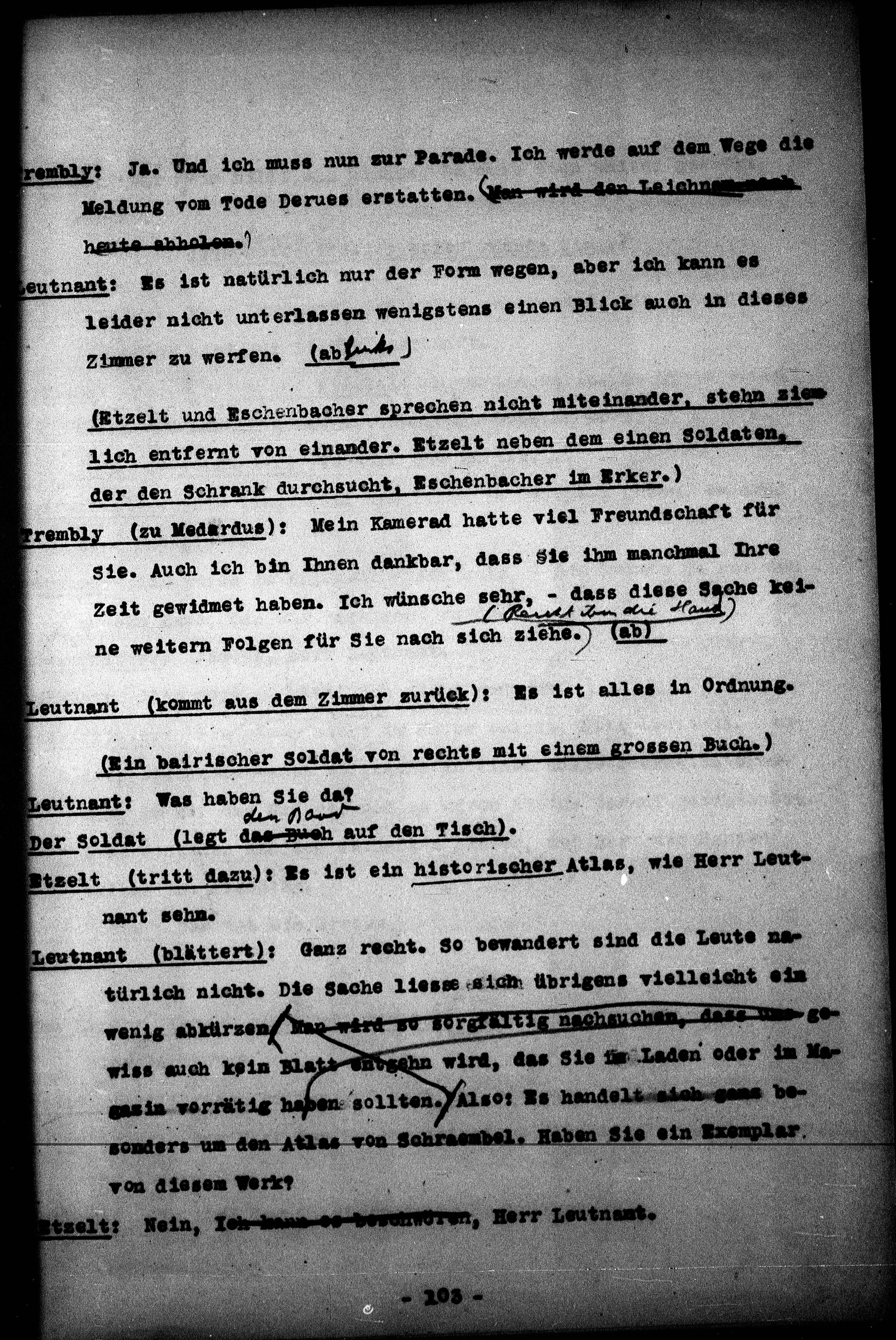 Leutnant (blättert): Ganz recht. So bewandert sind die Leute na-