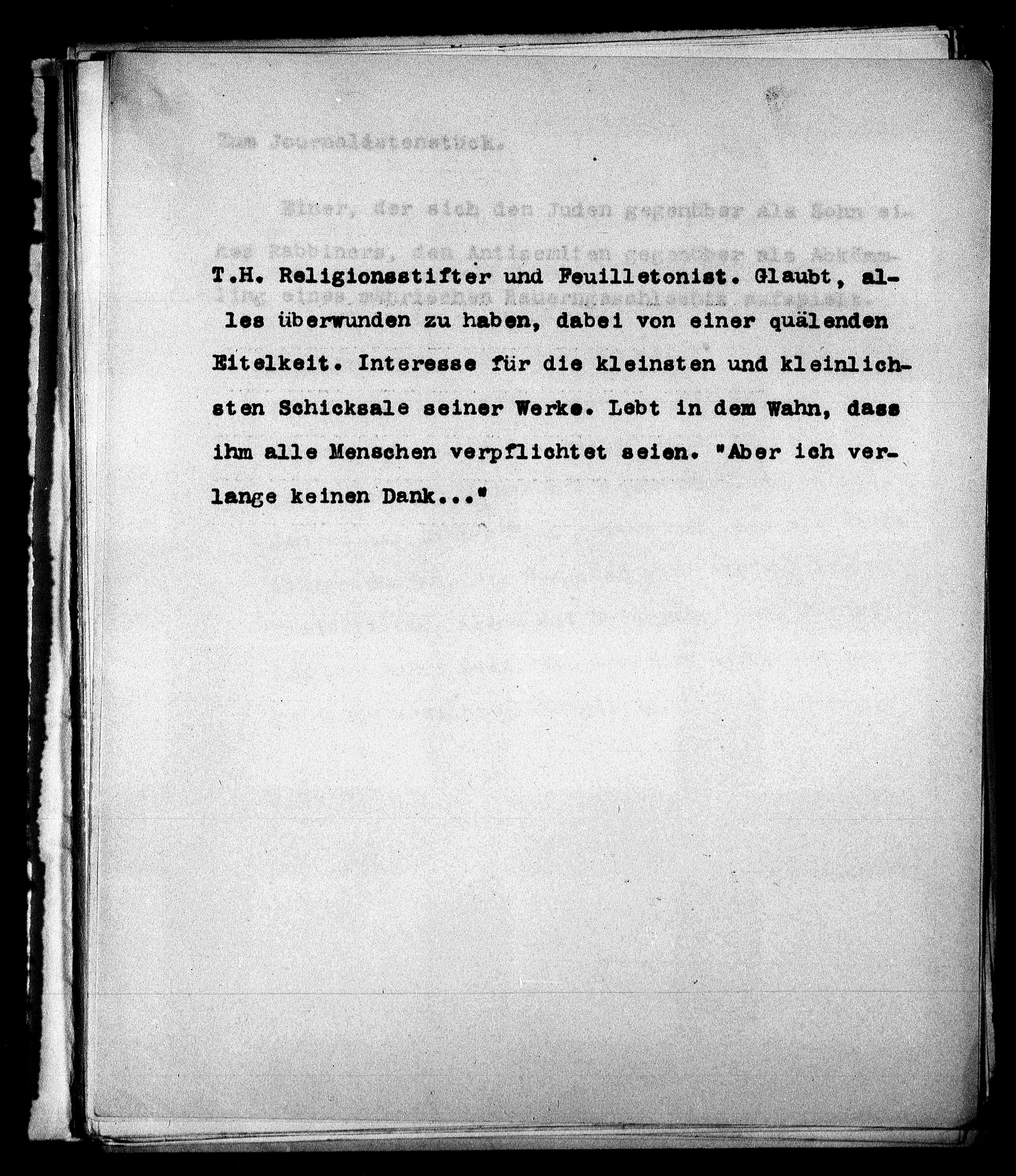 T.H. Religionsstifter und Feuilletonist. Glaubt, al-