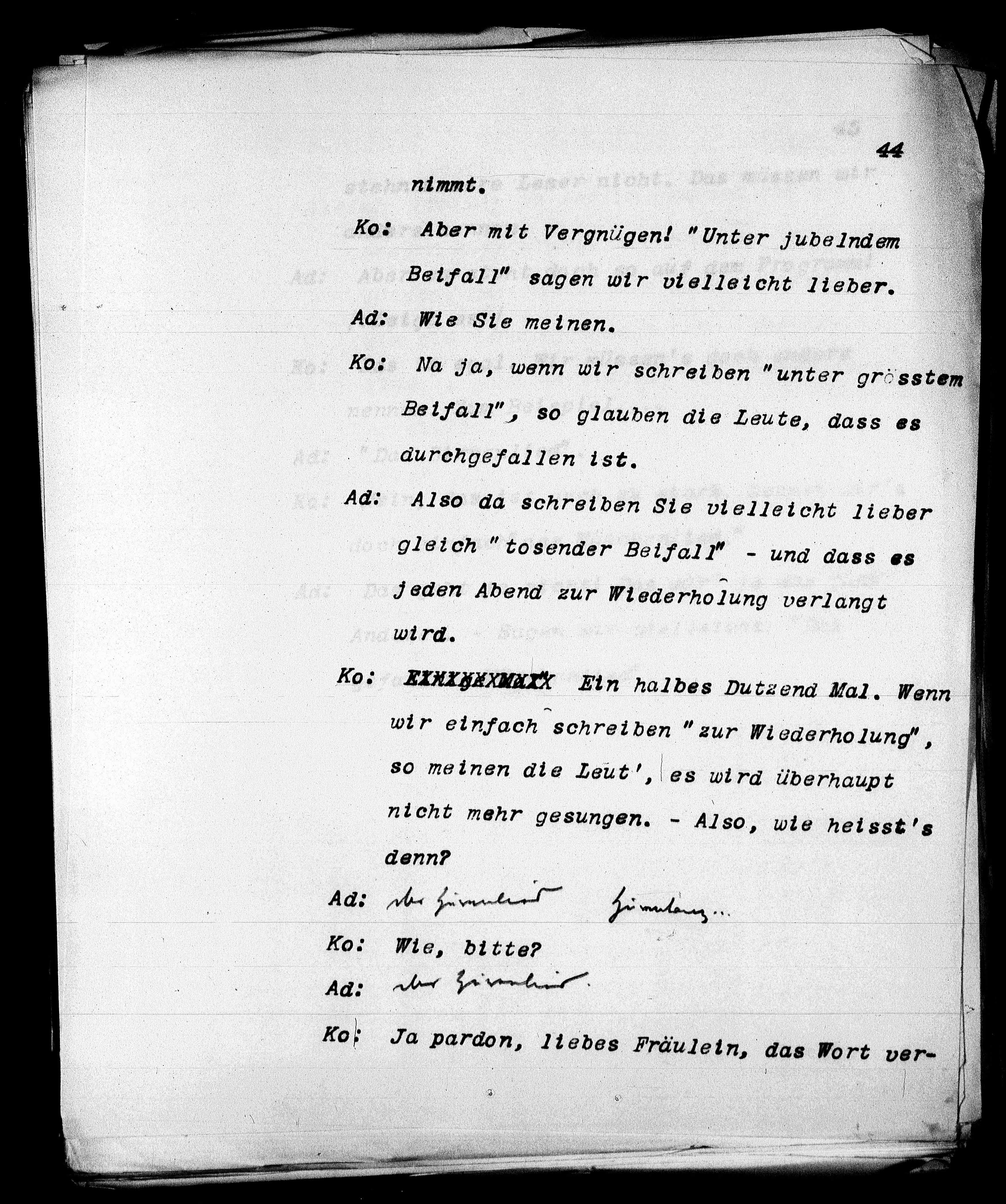 Ko: Ja pardon, liebes Fräulein, das Wort ver¬