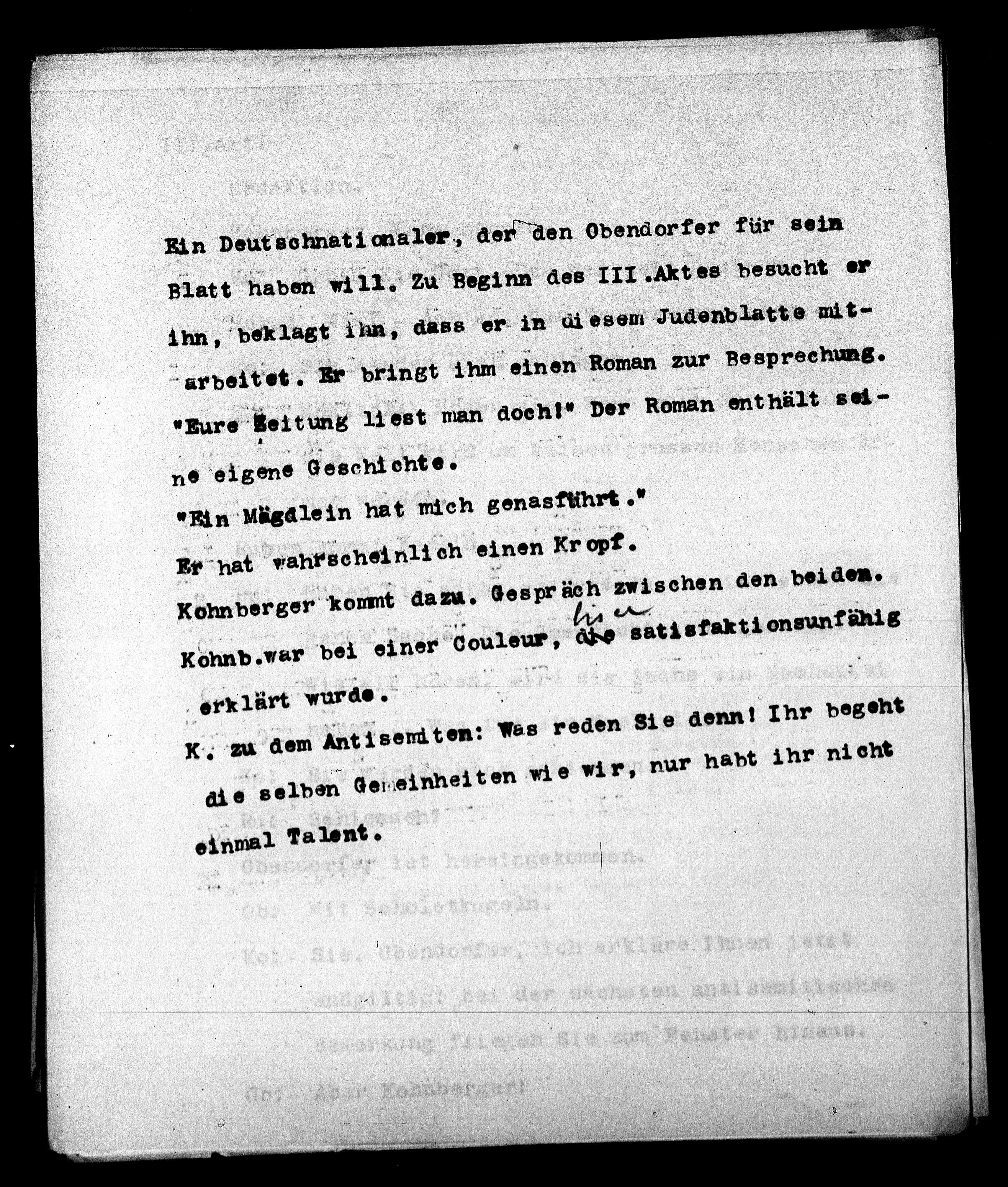 K. zu dem Antisemiten: Was reden Sie denn! Ihr begeht