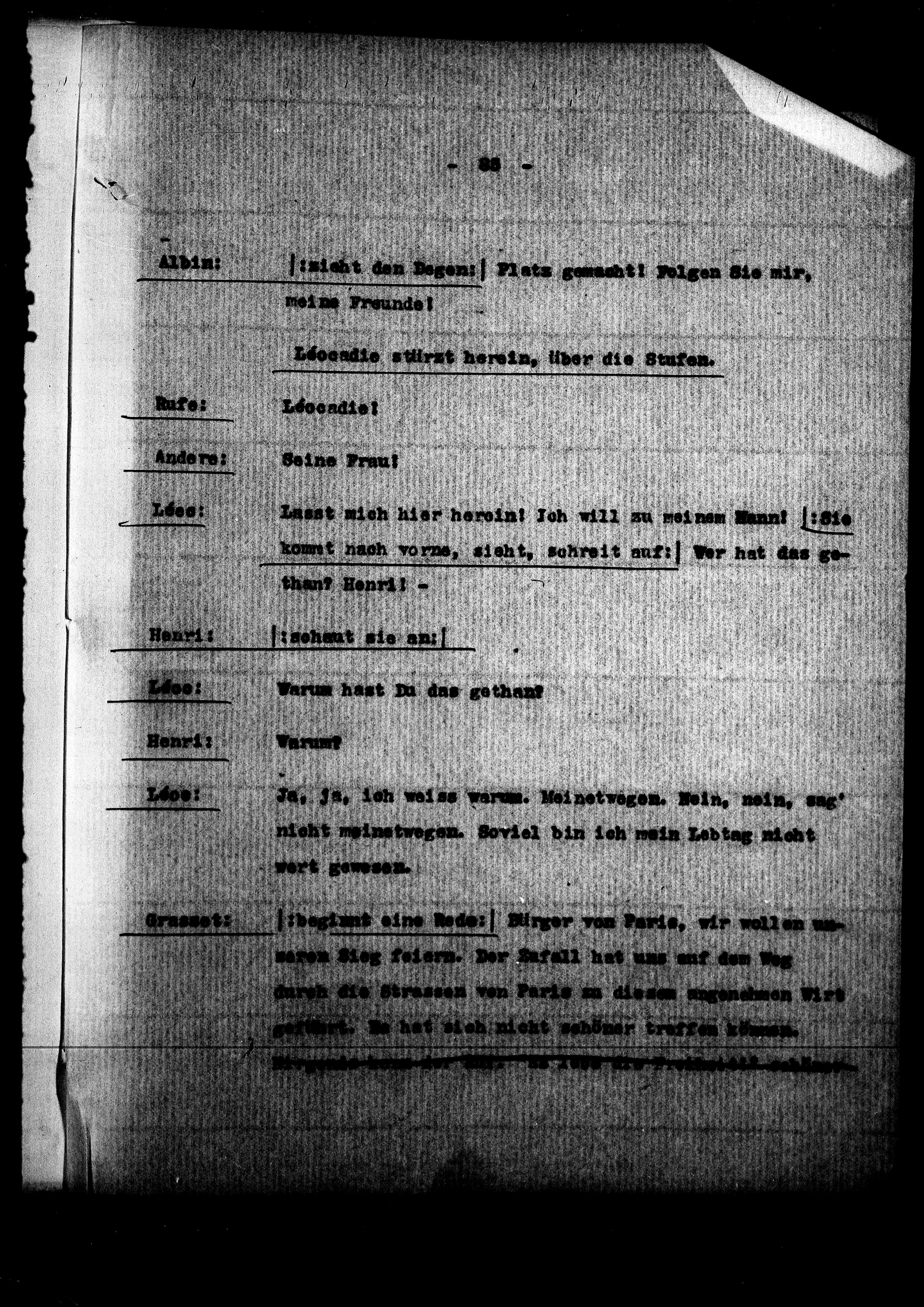 A235: Der grüne Kakadu. Groteske in einem Akt, Seite 88, in: Mikroverfilmung des Cambridger Nachlasses. Hg. Peter Andorfer, Martin Anton Müller und Laura Untner, Austrian Centre for Digital Humanities and Cultural Heritage, Wien 2024, https://schnitzler-mikrofilme.acdh.oeaw.ac.at/1429069_0088.html
