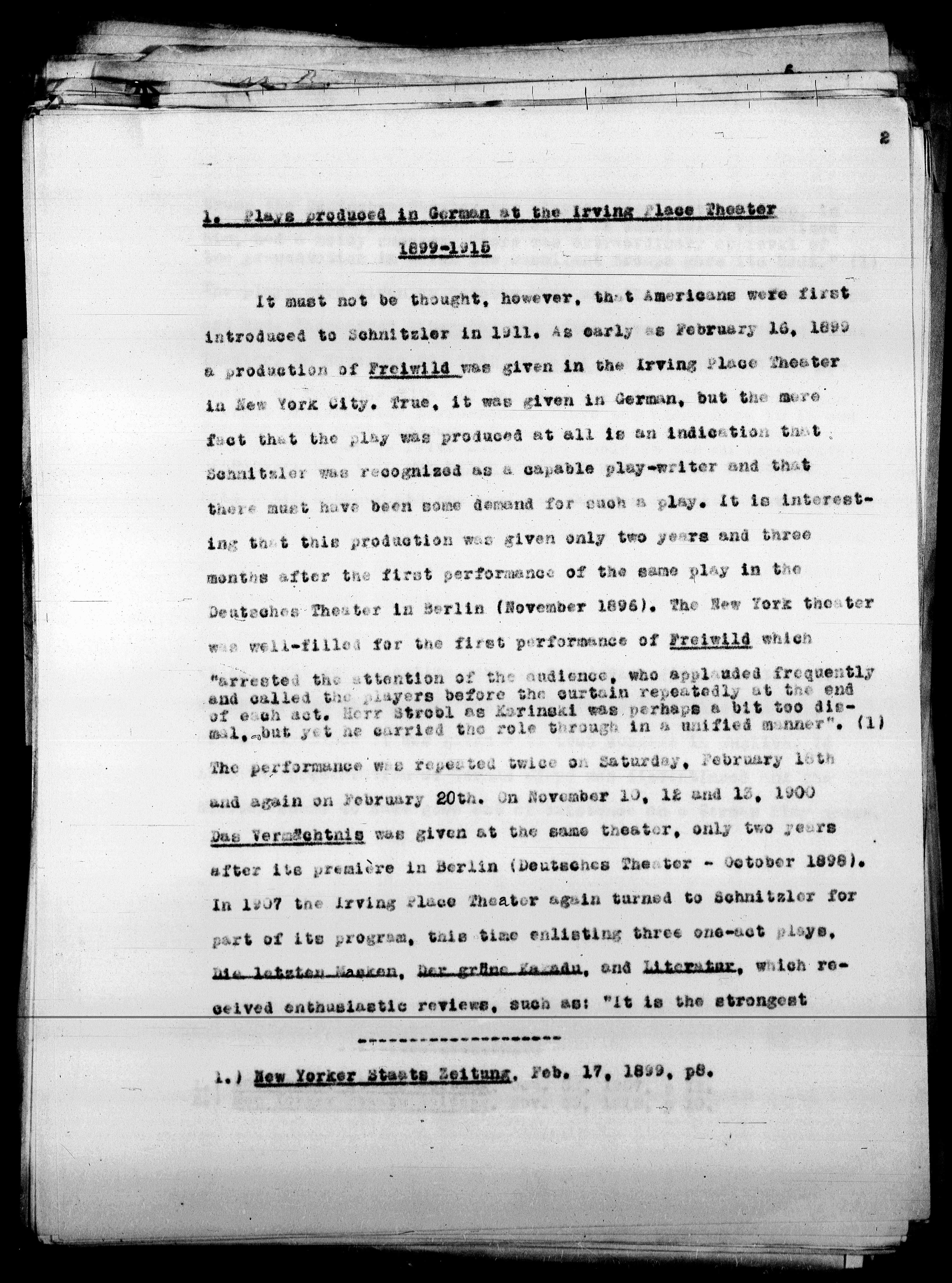1. ) New Yorker Staats Zeitung, Feb. 17, 1899, p8.